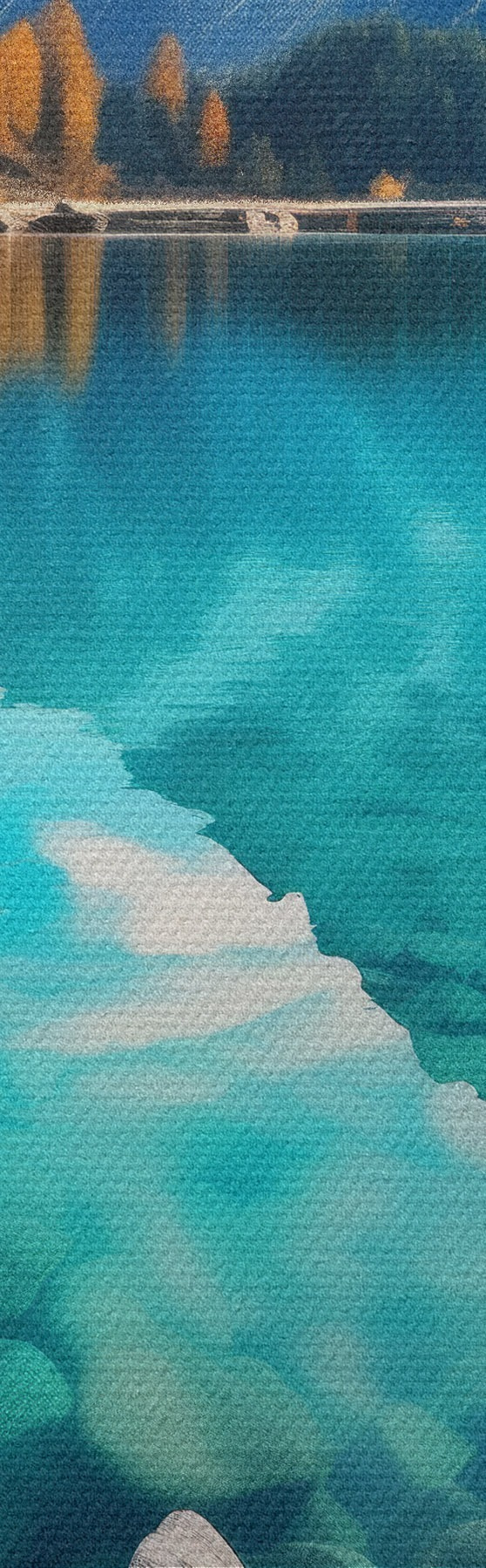 Obraz Horské jezero s tyrkysovou vodou a podzimními modříny Č. s46517