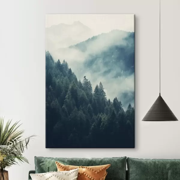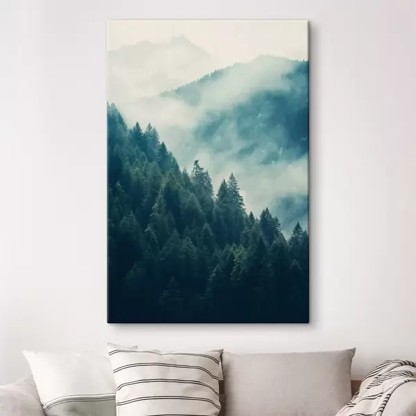 Obraz Zamlžené horské hřebeny a temný jehličnatý les Č. s46518