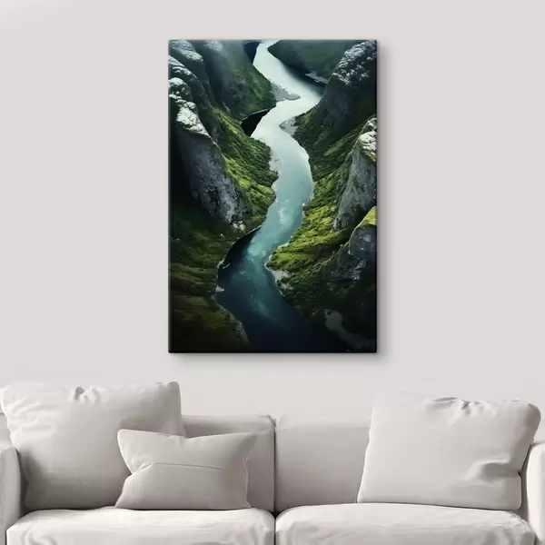 Obraz Meandrující řeka mezi útesy, pohled z ptačí perspektivy Č. s46521