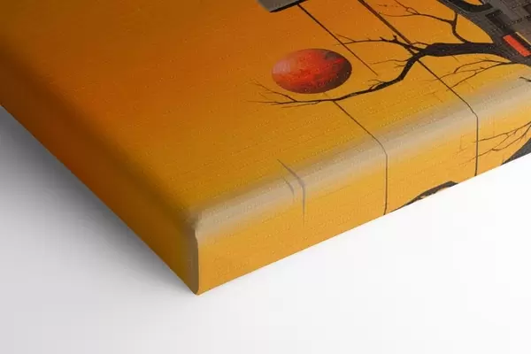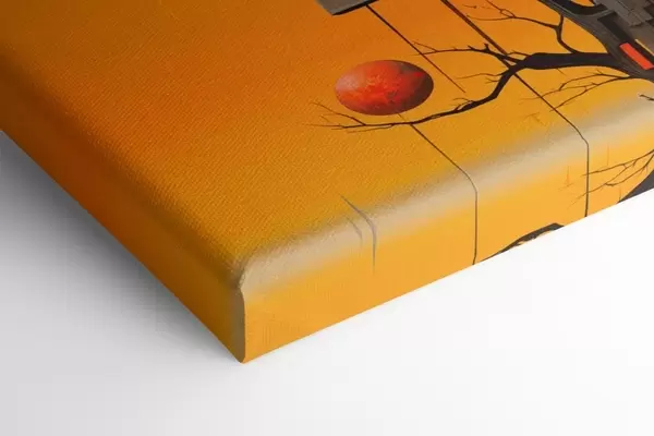 Obraz Surrealistický stromový dům na oranžovém pozadí Č. s46526