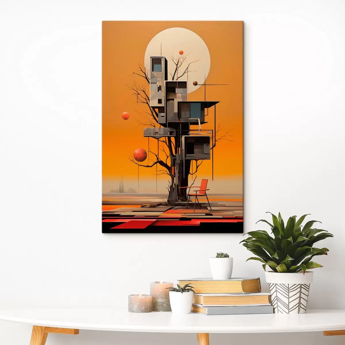 Obraz Surrealistický stromový dům na oranžovém pozadí Č. s46526