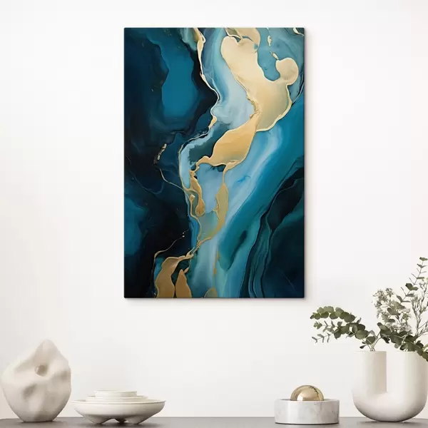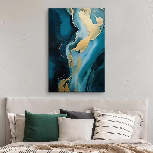 Obraz Modrozelený abstraktní vzor s okrovým pruhem Č. s46530