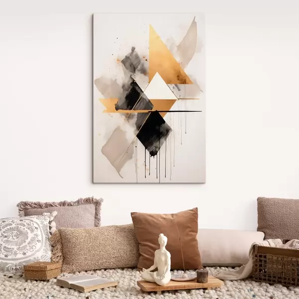 Obraz Geometrie s trojúhelníky a černým kosočtvercem, béžové tahy Č. s46539