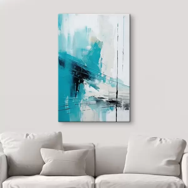 Obraz Tyrkysové tahy na bílém pozadí s černou čárkou Č. s46545