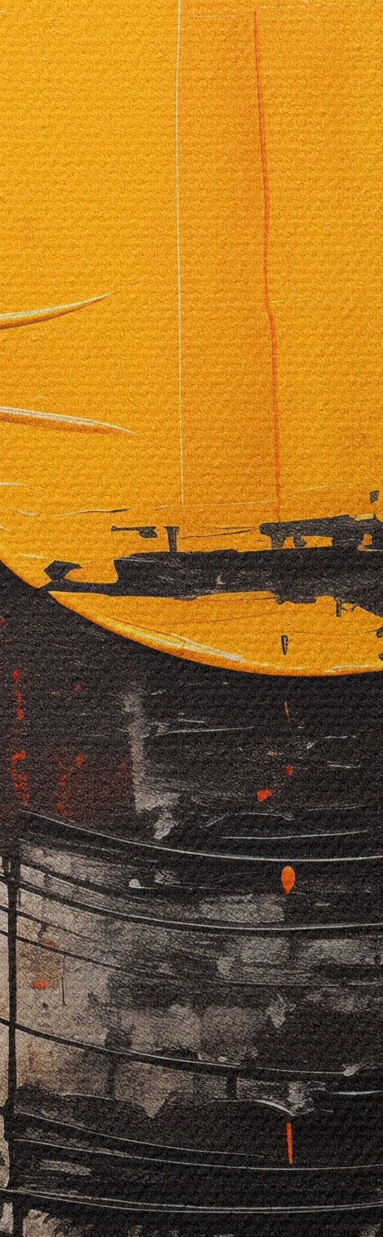 Obraz Oranžový disk v černém kruhu, tahy a skvrny Č. s46550