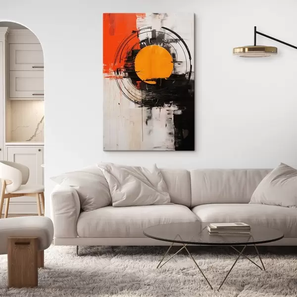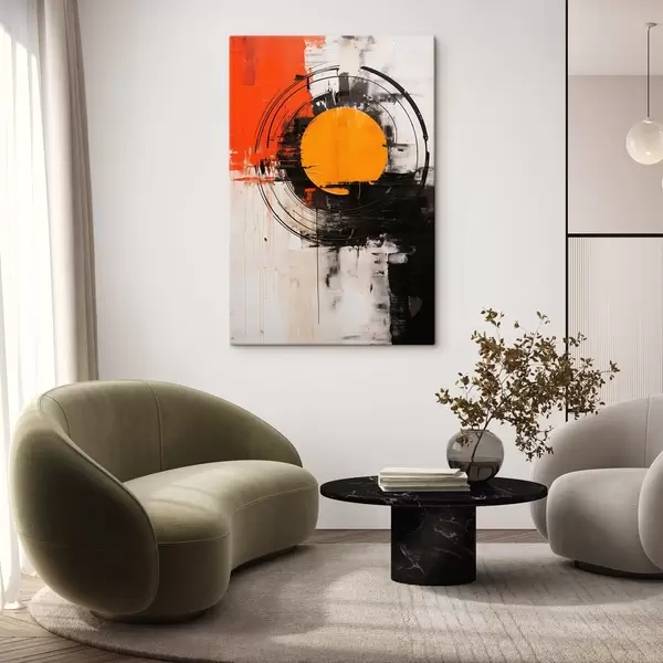 Obraz Oranžový disk v černém kruhu, tahy a skvrny Č. s46550