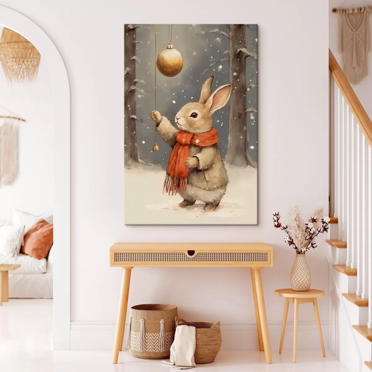Obraz Zimní zajíc se šálou a vánoční ozdobou Č. s46619