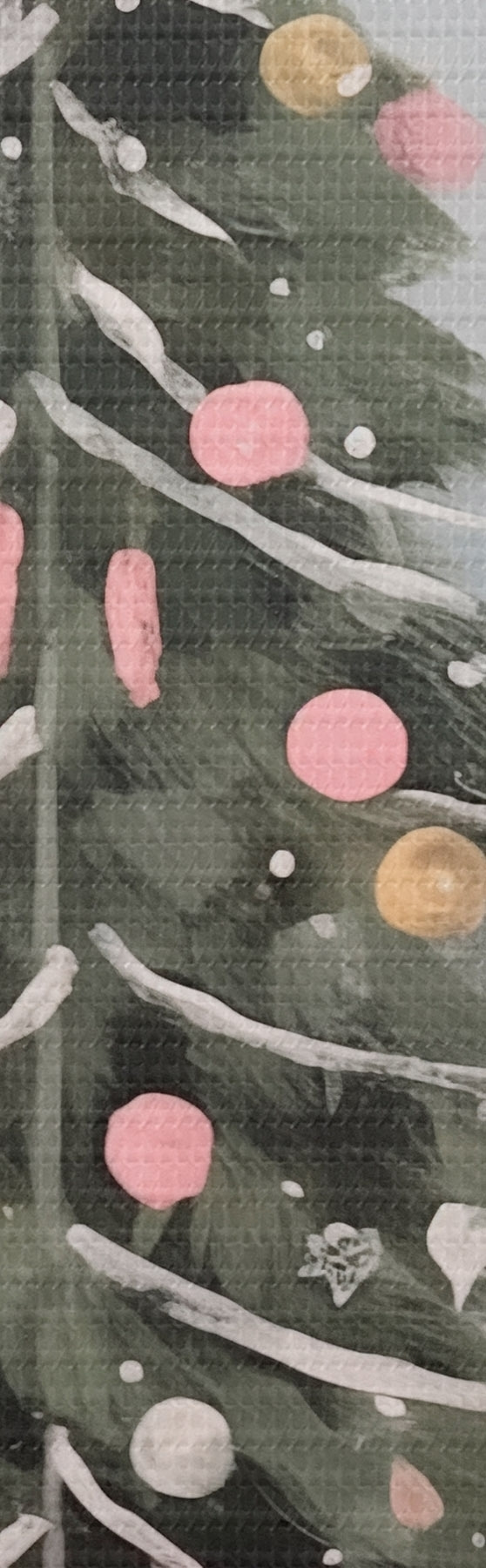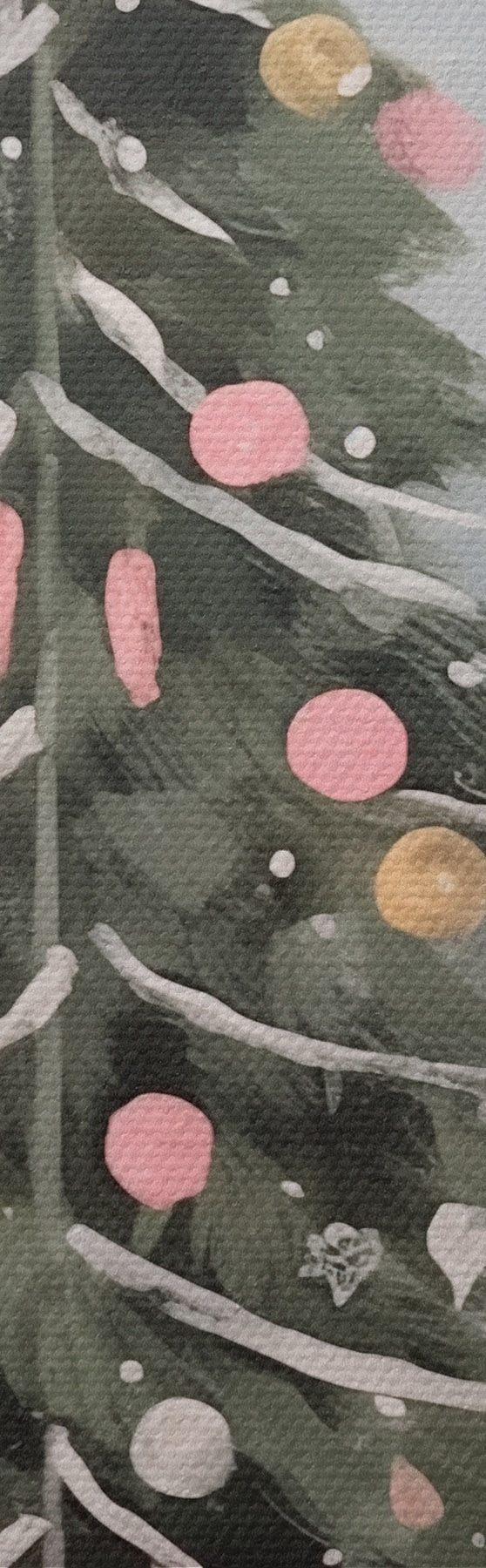 Obraz Růžové auto a ozdobený vánoční strom před domem Č. s46621
