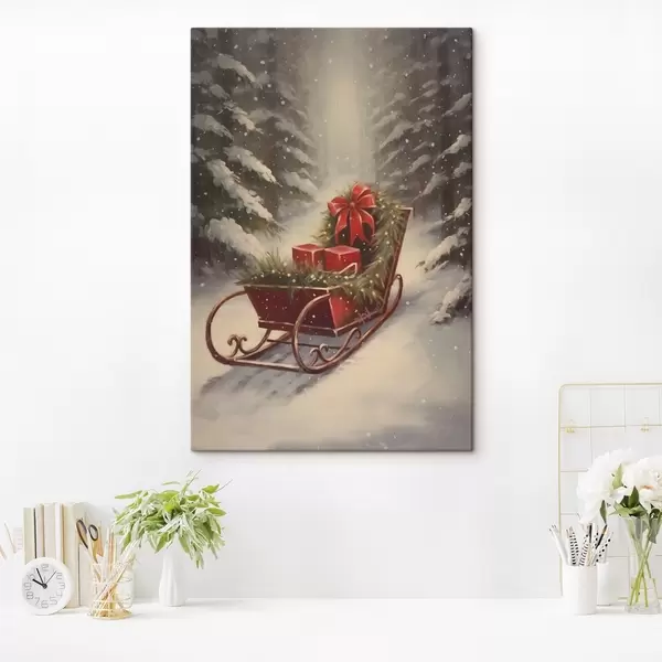 Obraz Vánoční sáně s dárky v zasněženém lese Č. s46630