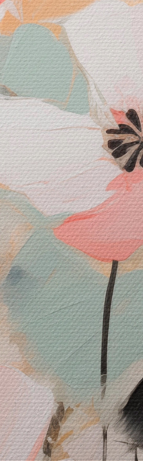 Obraz Růžové a černé květiny s listy, jemné pastelové barvy, abstraktní květinová kompozice, minimalistické umění Č. s46688