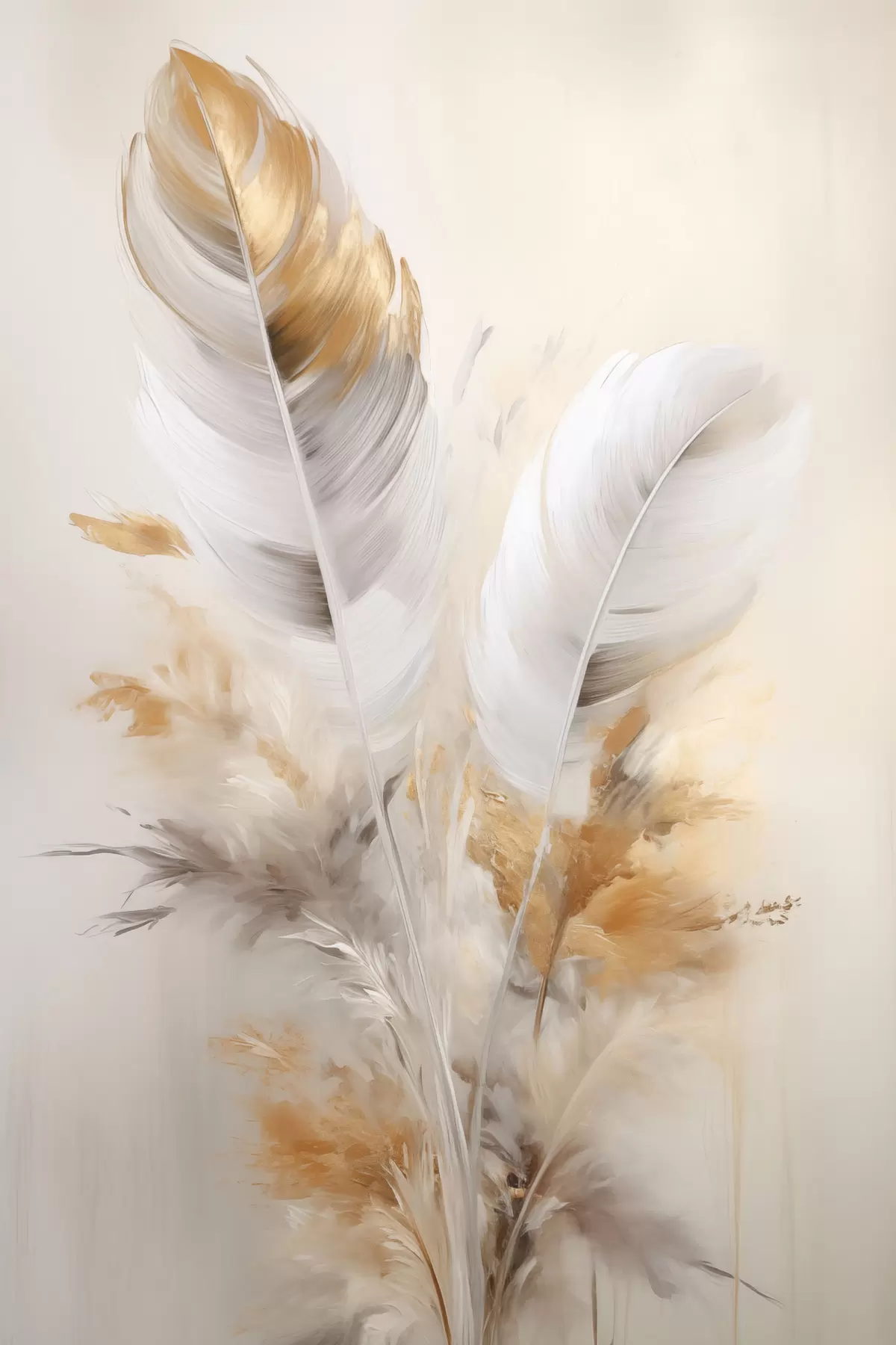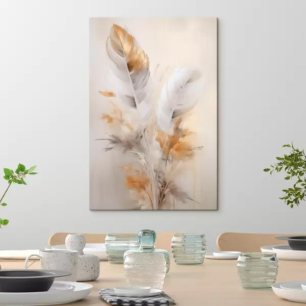 Obraz Abstraktní peří, obklopené béžovými a hnědými chmýřími, měkké a jemné, na světle béžovém pozadí Č. s46711