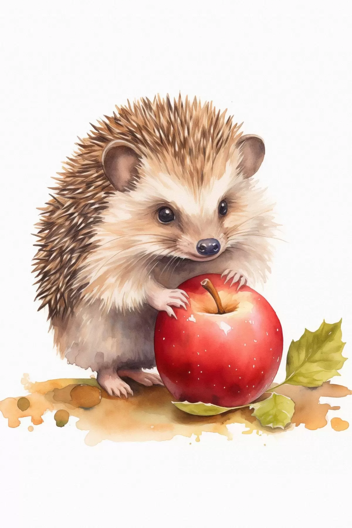 Obraz Ježek a jablko, imitace akvarelu Č. s46769