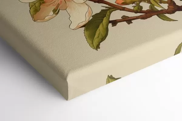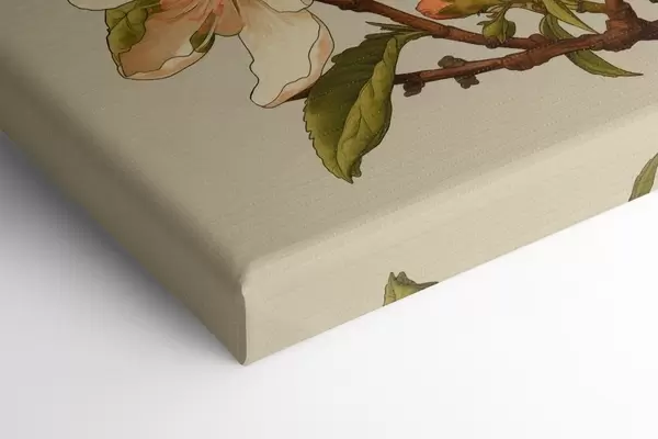 Obraz Kvetoucí větev s bílými květy na béžovém pozadí ve stylu klasické ilustrace Č. s46923