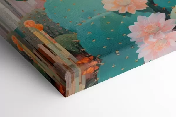 Obraz Kaktusová květinová zahrada v jemných pastelových barvách v ilustračním stylu Č. s46935