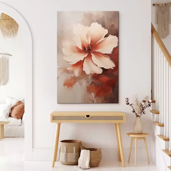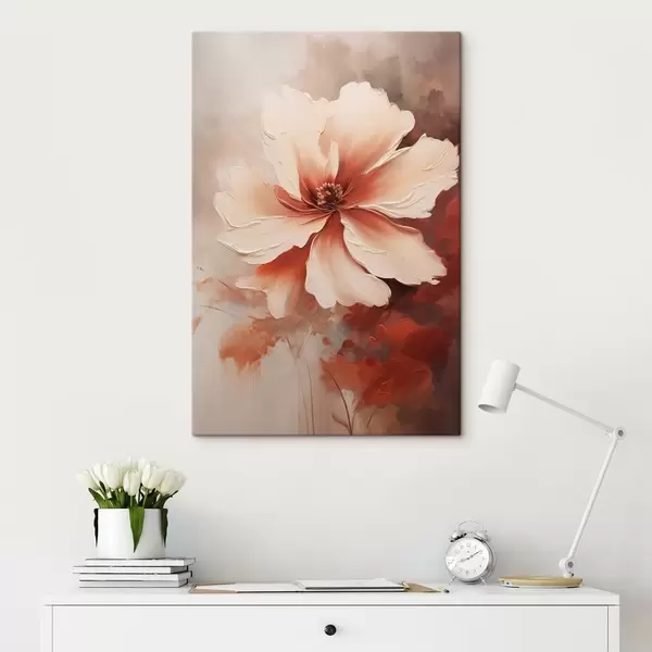Obraz Detailní záběr květu bílého korálu na rozmazaném pozadí v olejomalířském stylu Č. s46939