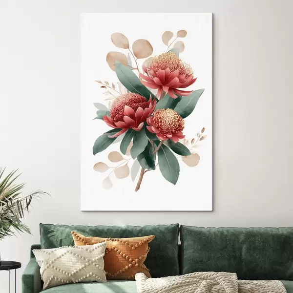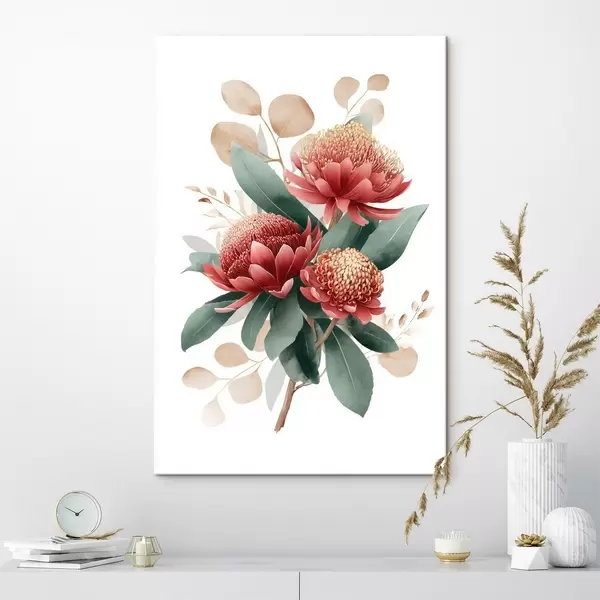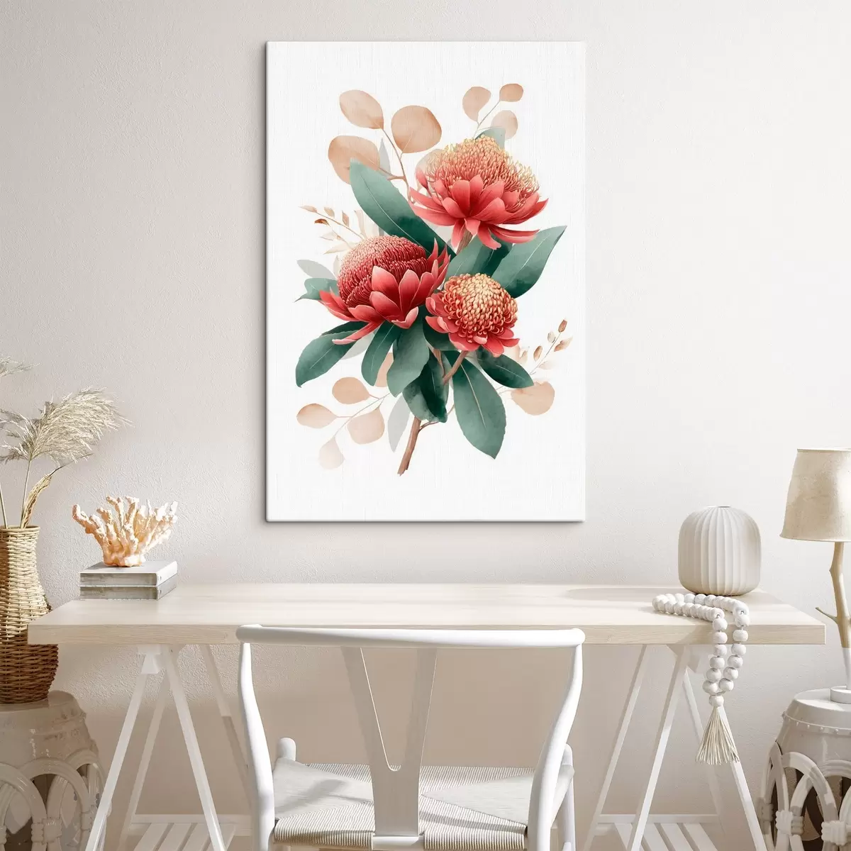 Obraz Výrazná kytice z proteí a dekorativních listů v moderním uměleckém stylu Č. s46954