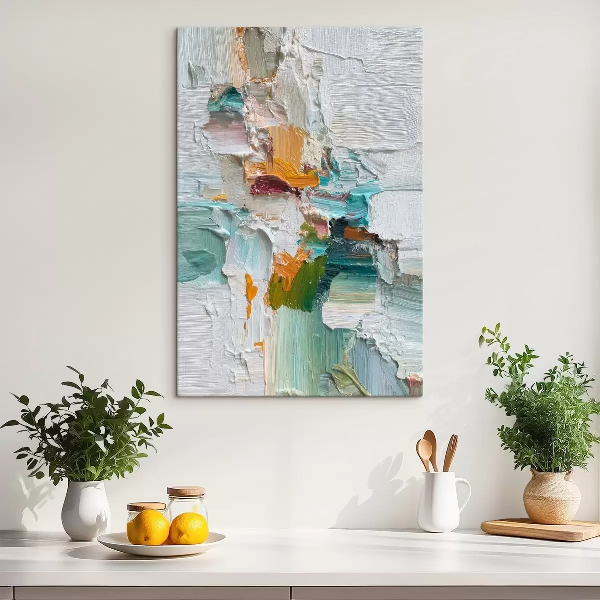 Obraz Kompozice s tyrkysovými a oranžovými akcenty v olejomalířském stylu Č. s46958