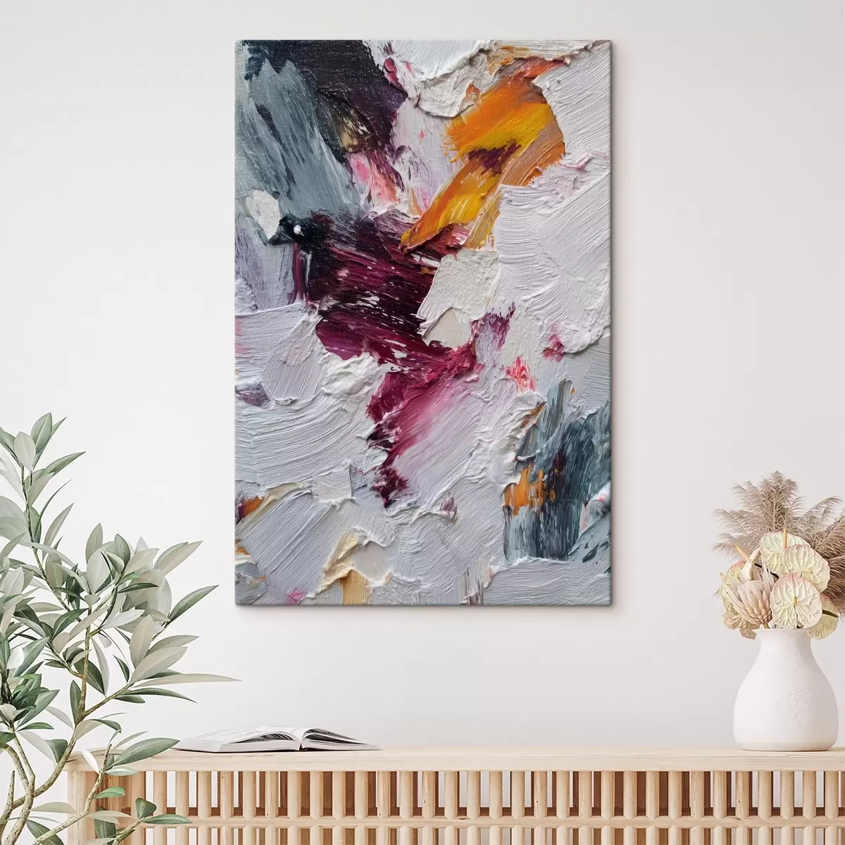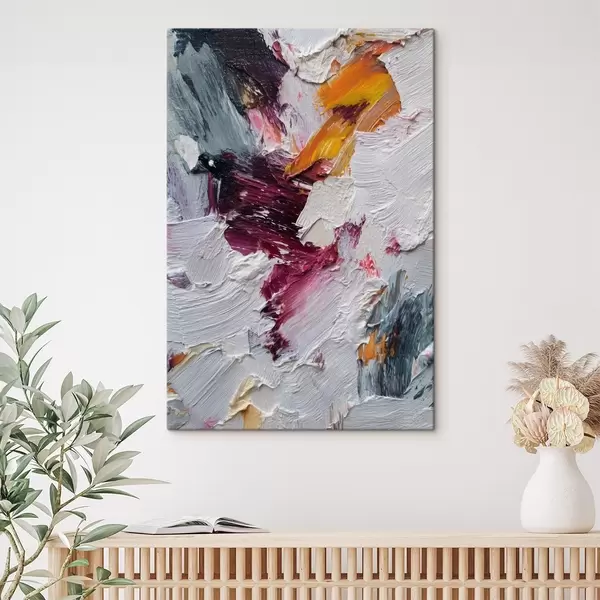 Obraz Abstraktní kompozice s intenzivními třešňovými a oranžovými tahy štětcem ve stylu olejomalby Č. s46959