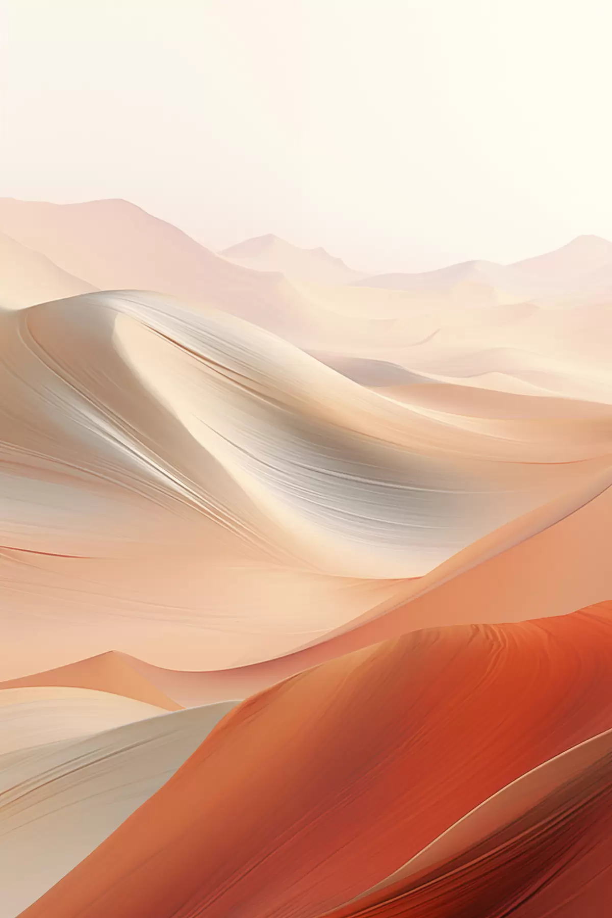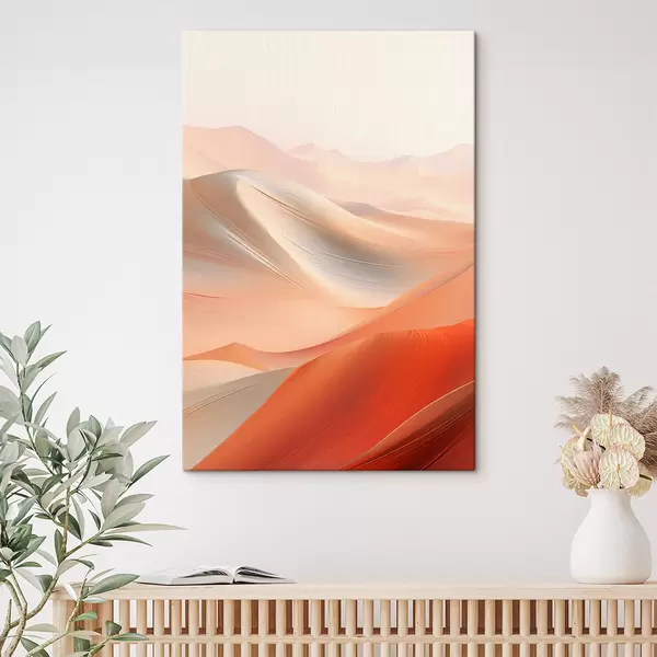 Obraz Abstraktní pouštní krajina s vlnícími se písečnými dunami v teplých oranžových a bílých tónech Č. s47030