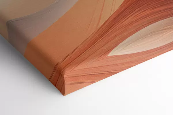 Obraz Abstraktní pouštní krajina s vlnícími se písečnými dunami v teplých oranžových a bílých tónech Č. s47031