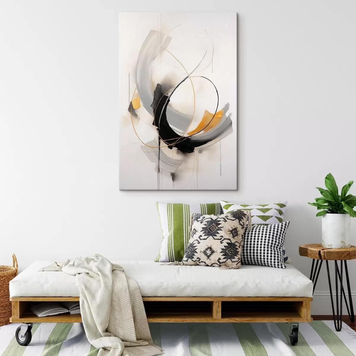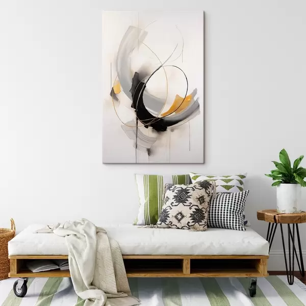 Obraz Abstraktní malba se žlutými a černobílými tahy štětcem, dynamické linie Č. s47035