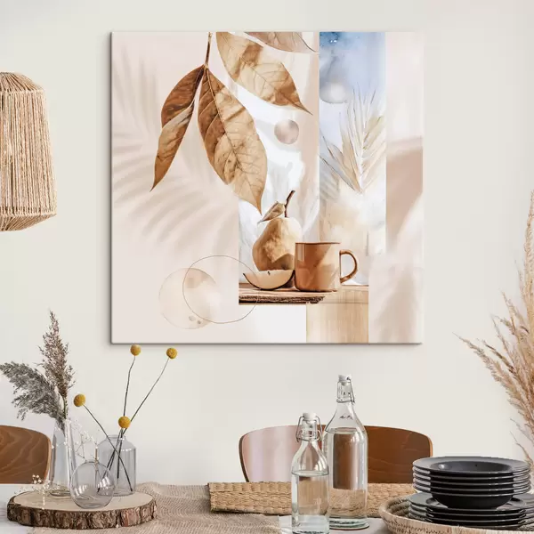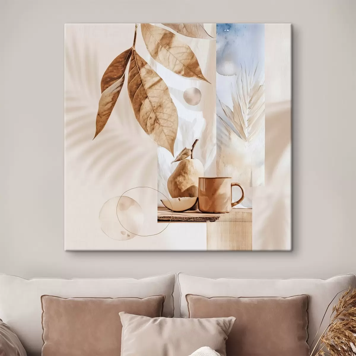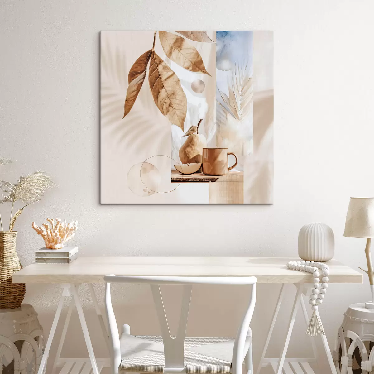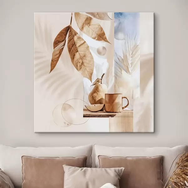 Obraz Abstrakt s listy, hruškou a šálkem Č. s47047