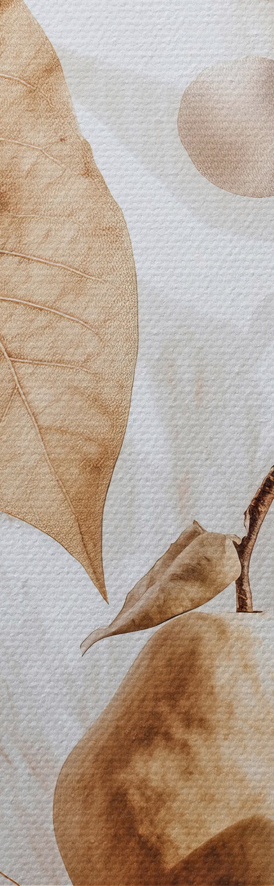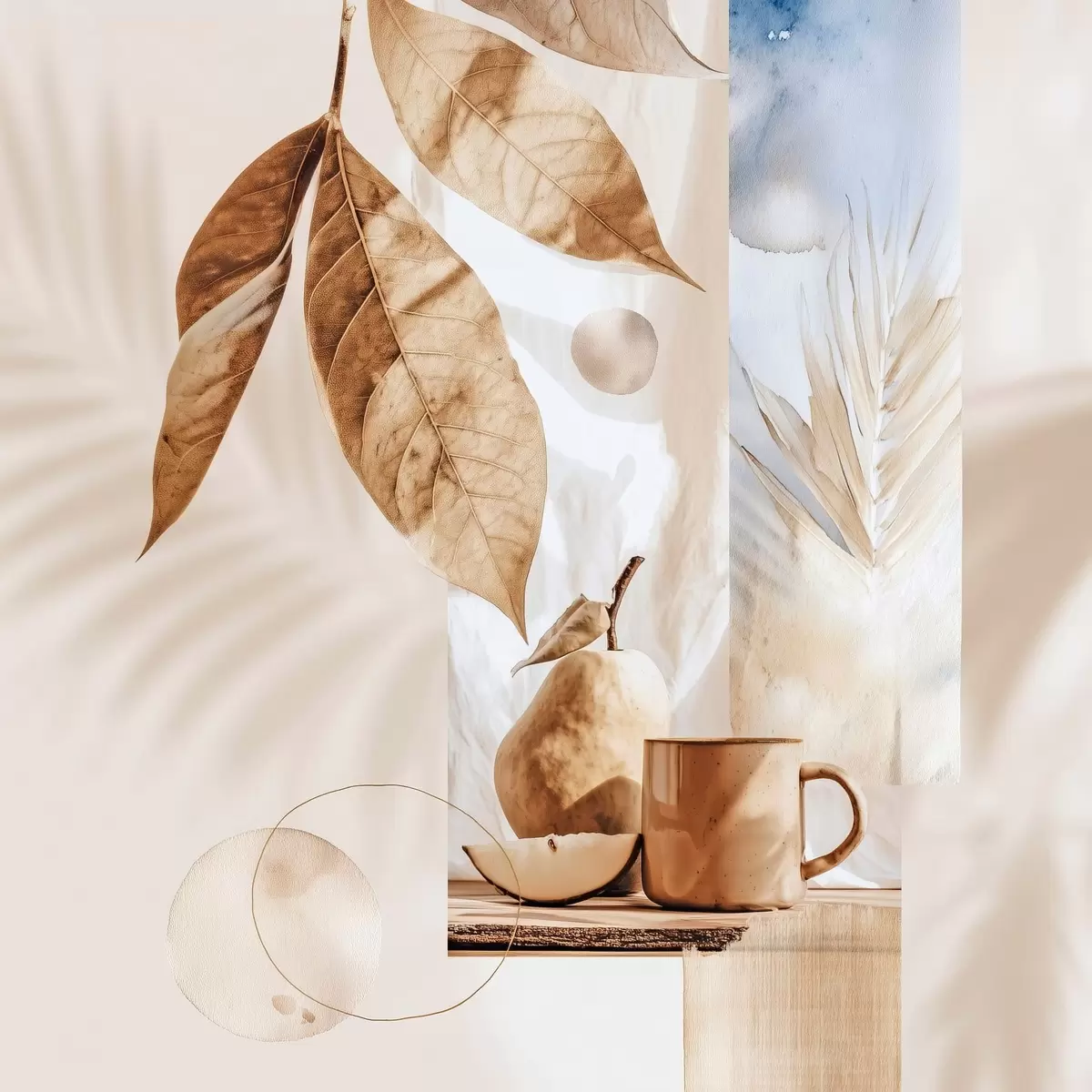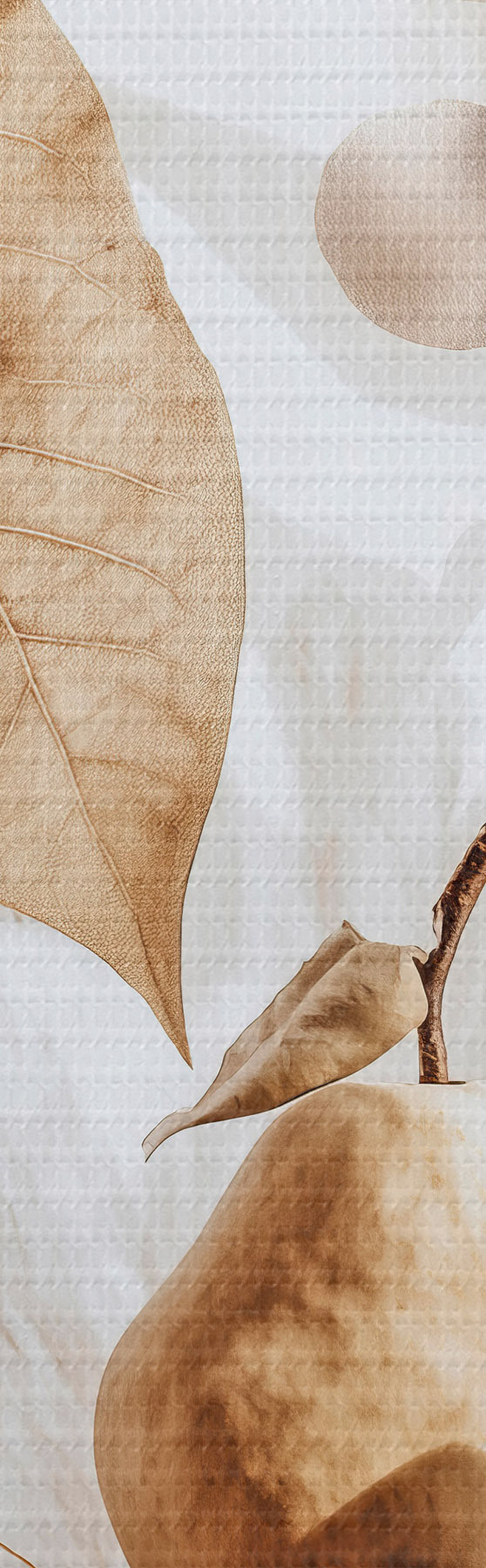 Obraz Abstrakt s listy, hruškou a šálkem Č. s47047