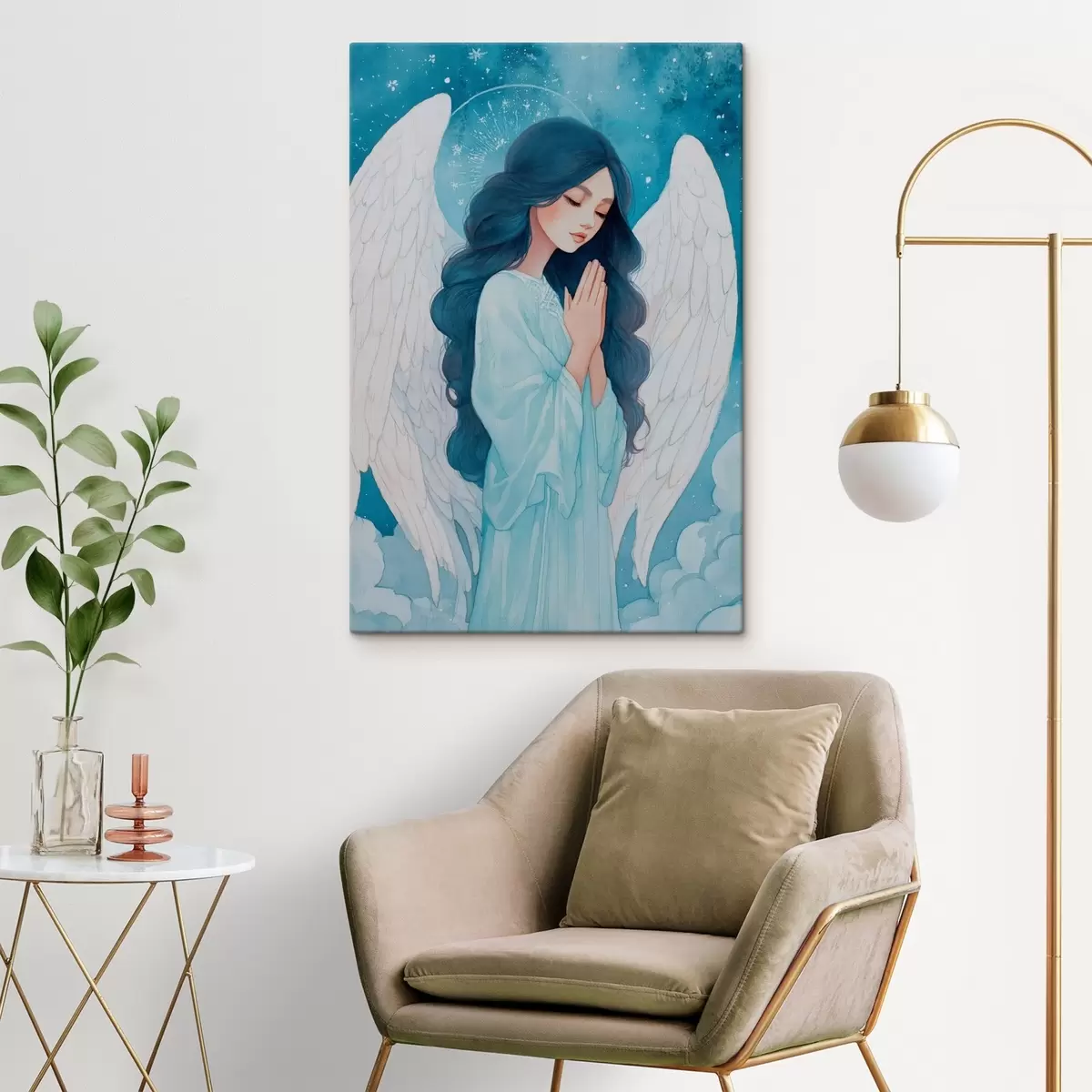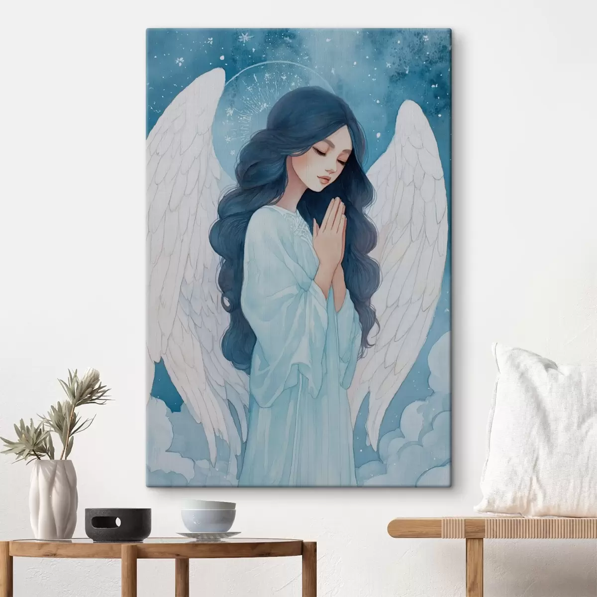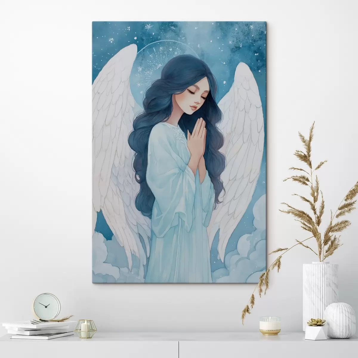Obraz Okouzlující ilustrace anděla mezi mraky v bílo-modré barevné paletě Č. s47095