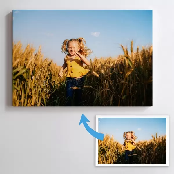 Vaši fotografii můžeme vytisknout na plátno nebo plakát. Nahrajte a upravte svou fotografii v našem editoru za pouhých 5 minut.
