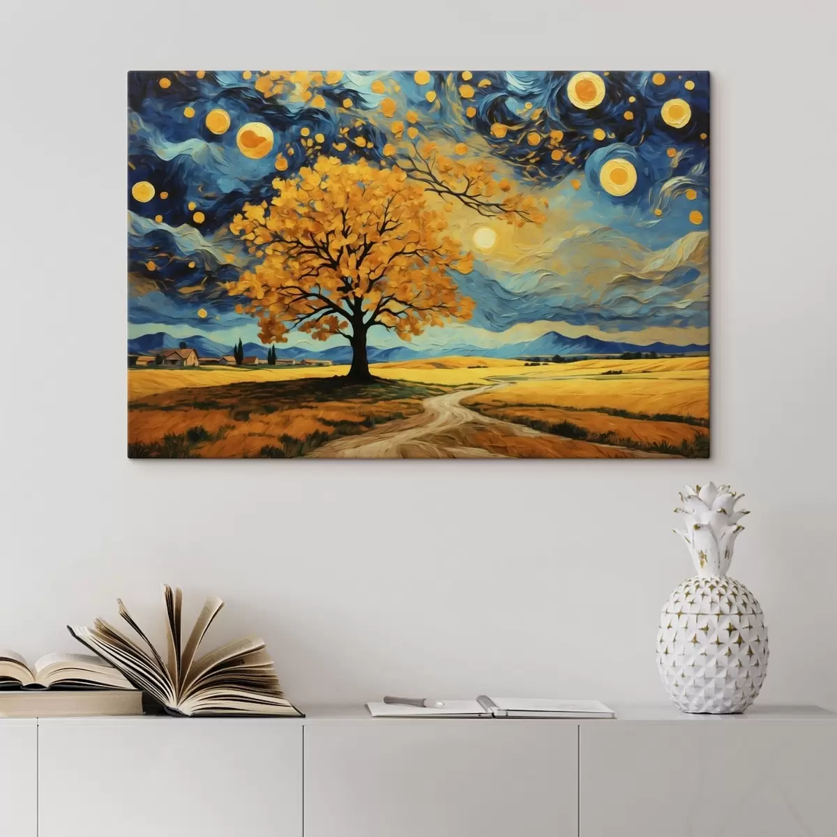 Obraz Krajina se stromem a jasnou hvězdnou oblohou Č. s47255
