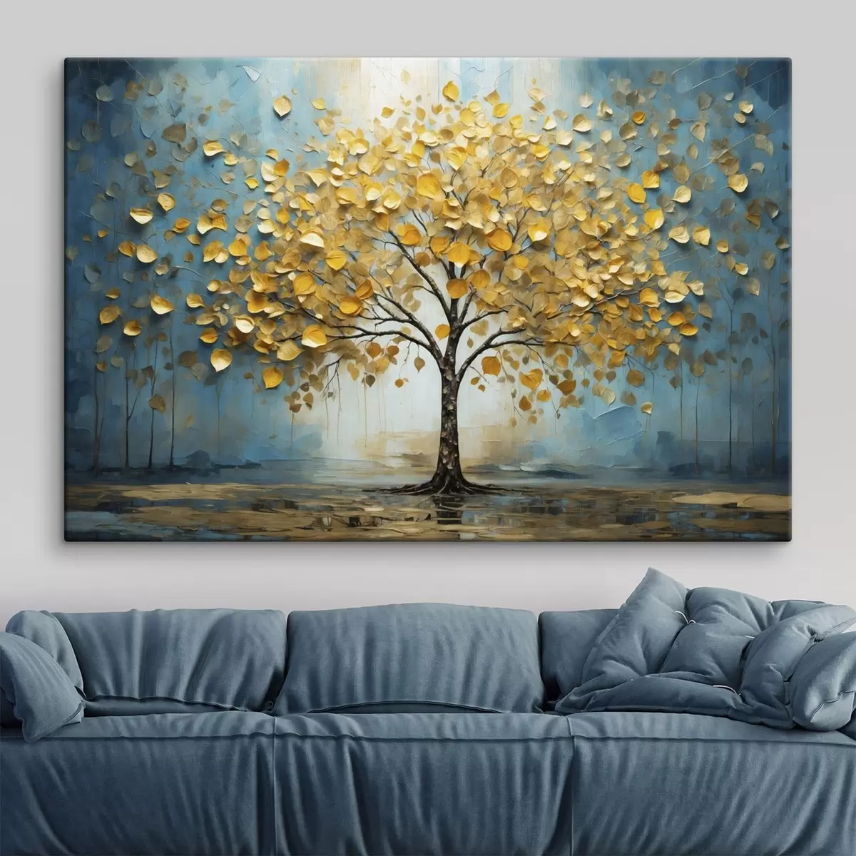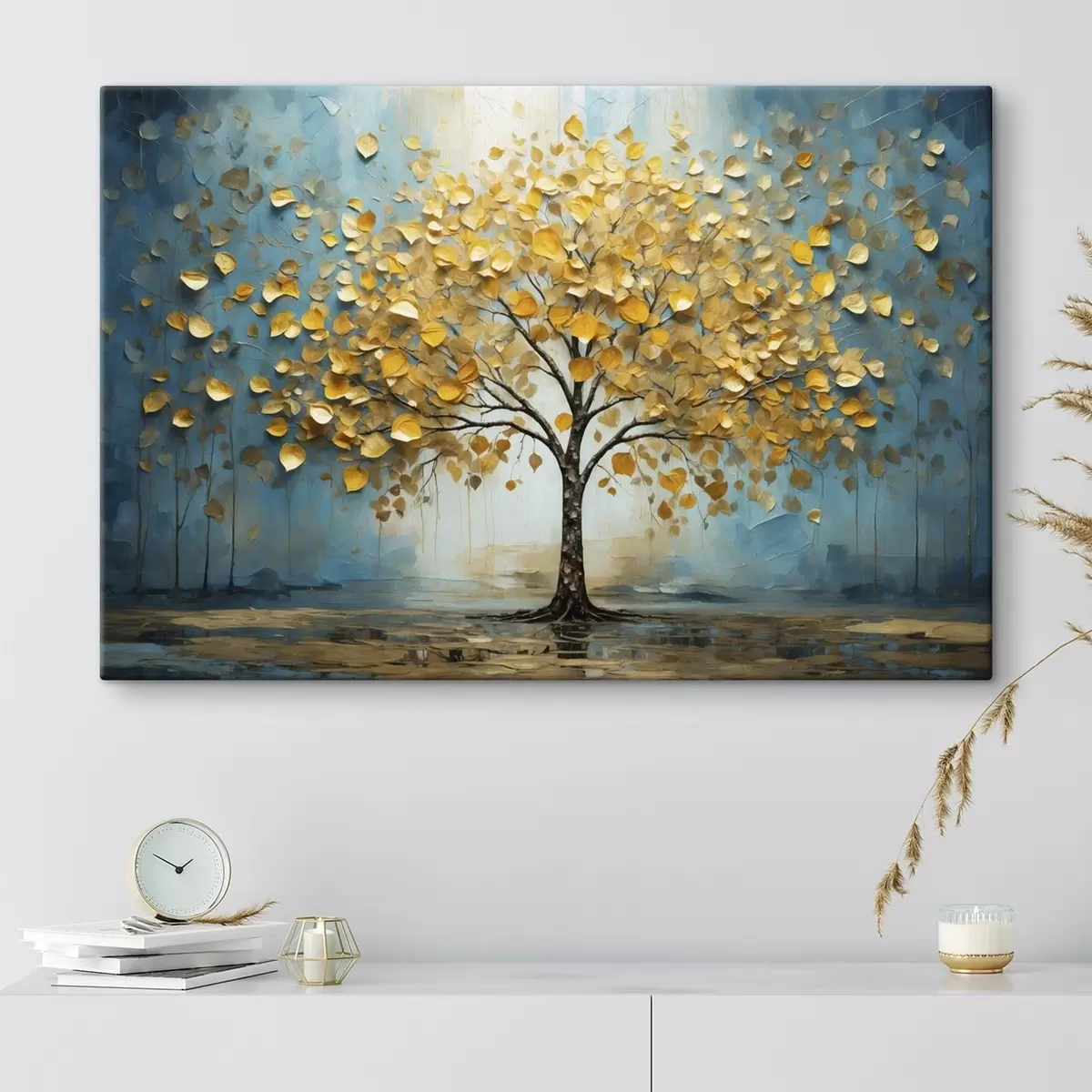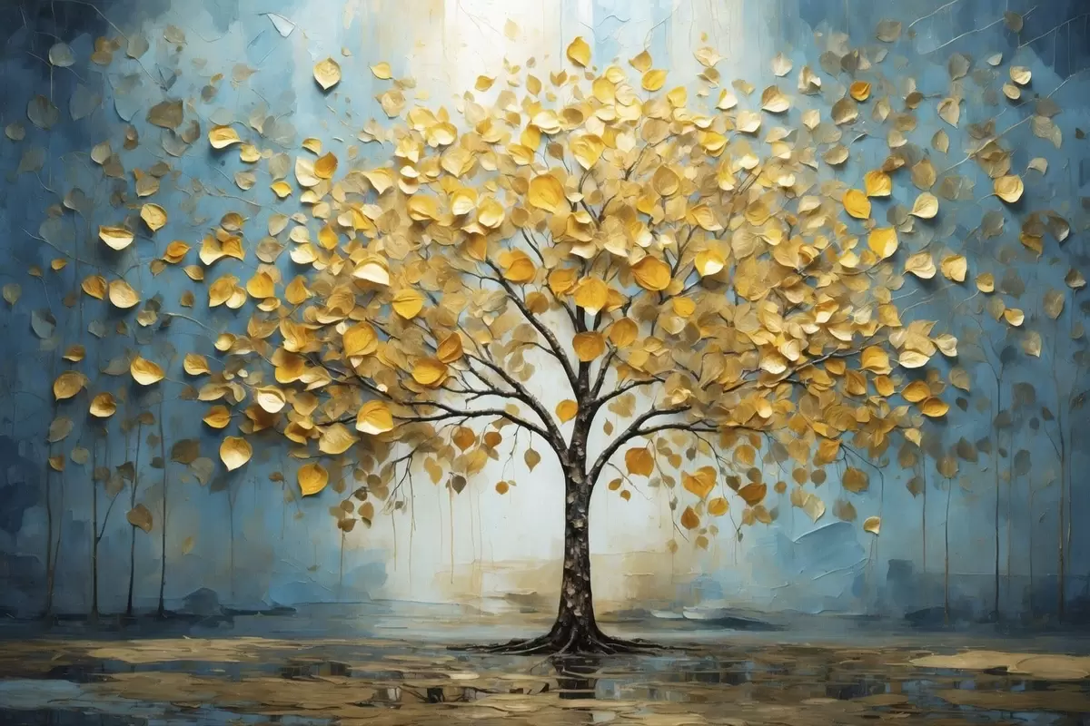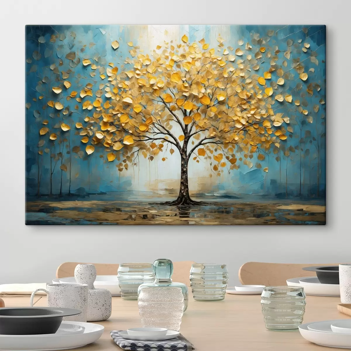 Obraz Strom se žlutými listy na modrém pozadí Č. s47256
