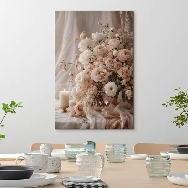 Obraz Krémové květiny vedle zapálené svíčky Č. s47281