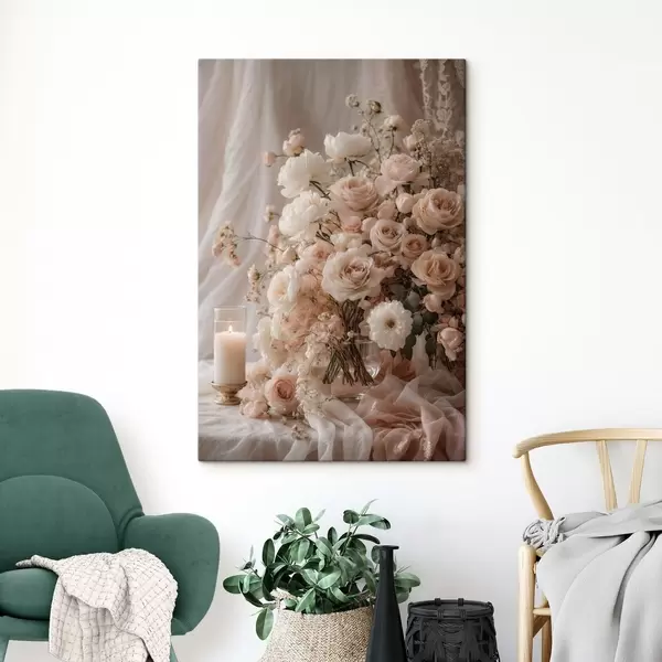 Obraz Krémové květiny vedle zapálené svíčky Č. s47281
