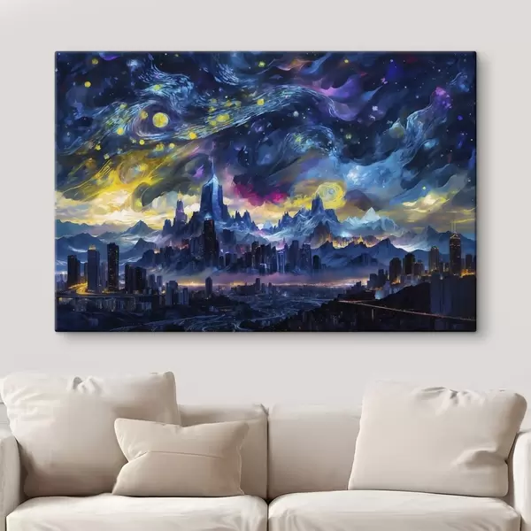 Obraz Fantastické město pod zářící noční oblohou Č. s47288