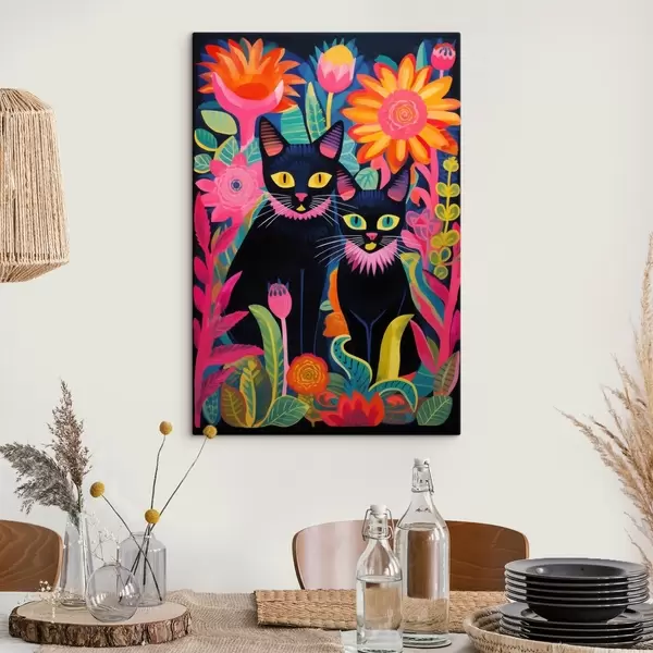 Obraz Dvě černé kočky mezi jasnými květinami Č. s47299