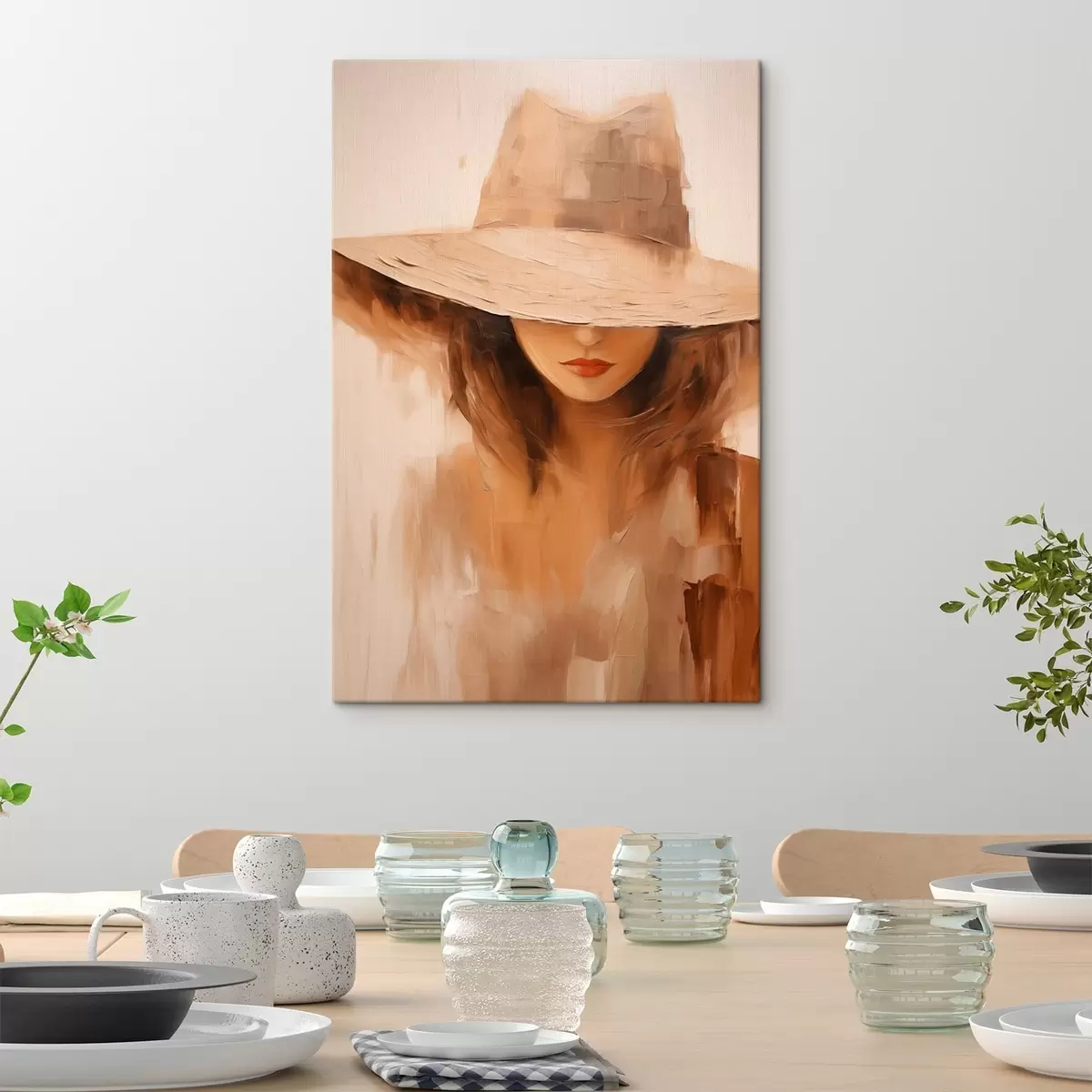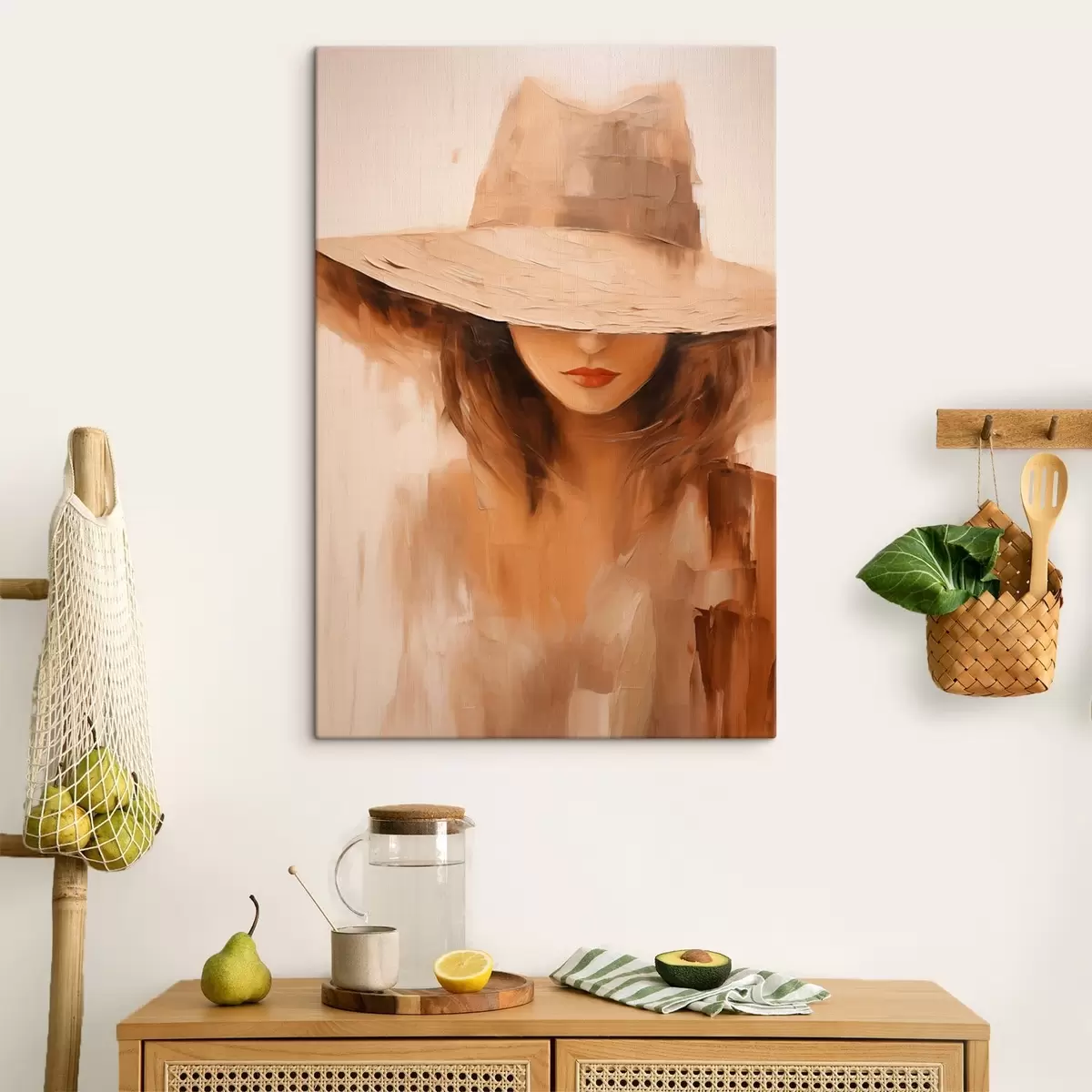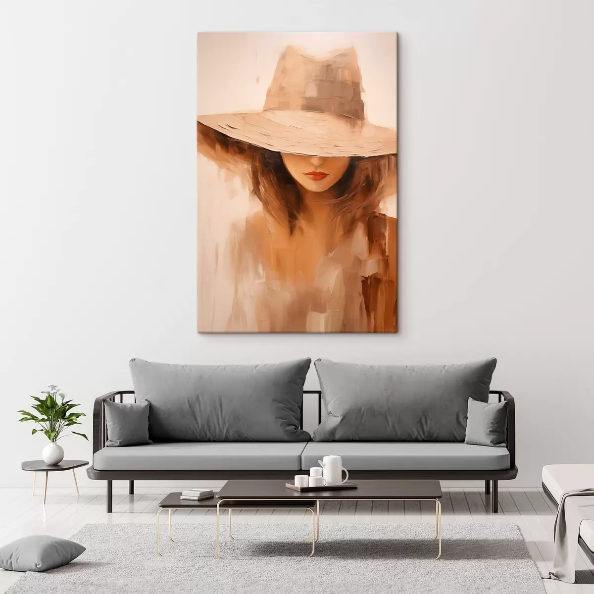 Obraz Žena v klobouku v teplých abstraktních tahy Č. s47312