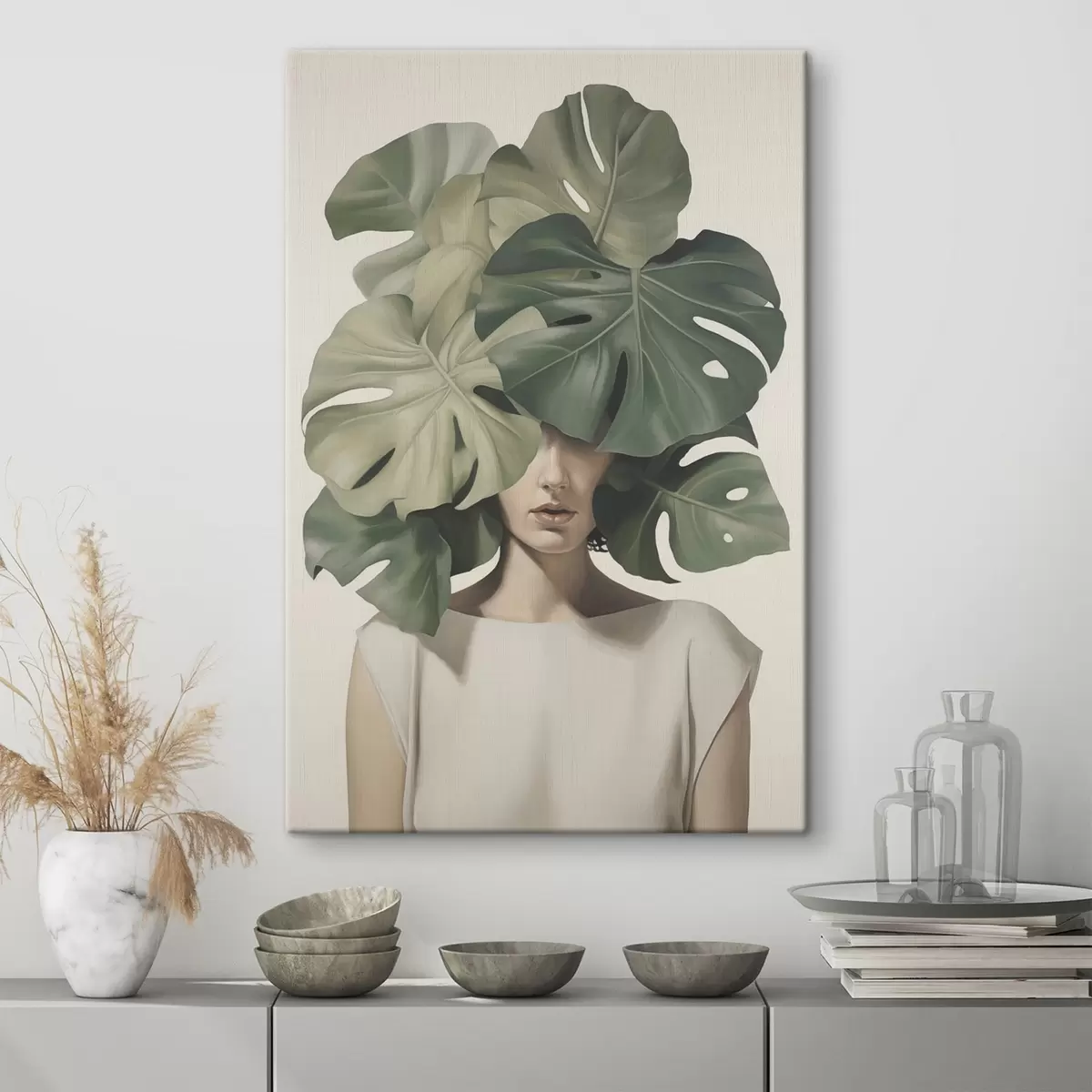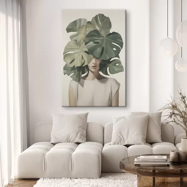 Obraz Abstraktní portrét dívky s listy monstery Č. s47336