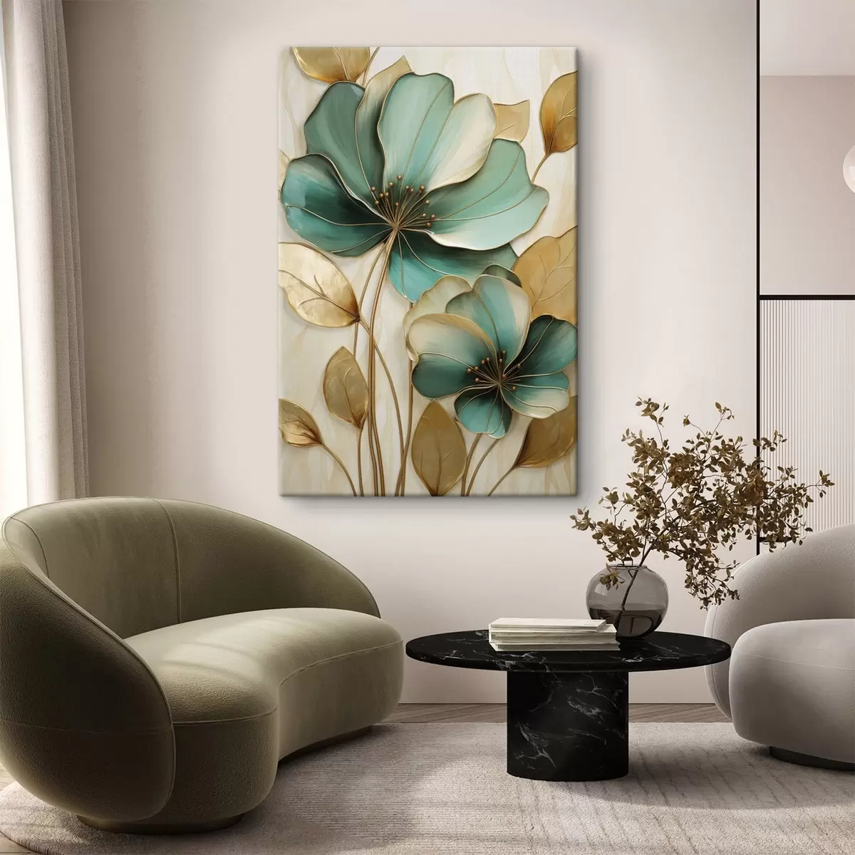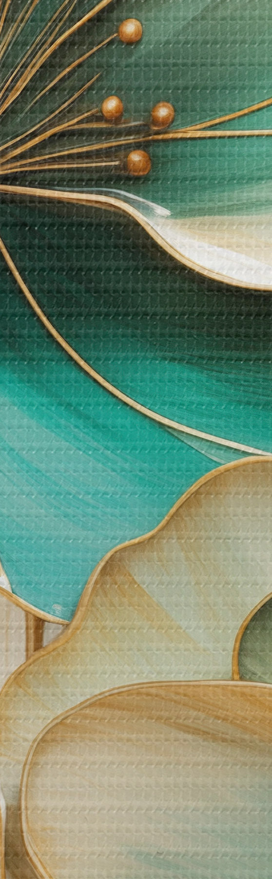 Obraz Velké modrozelené a žluté květy s obrysy, obklopené žlutými listy na abstraktním pozadí Č. s47418