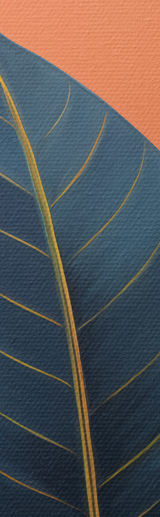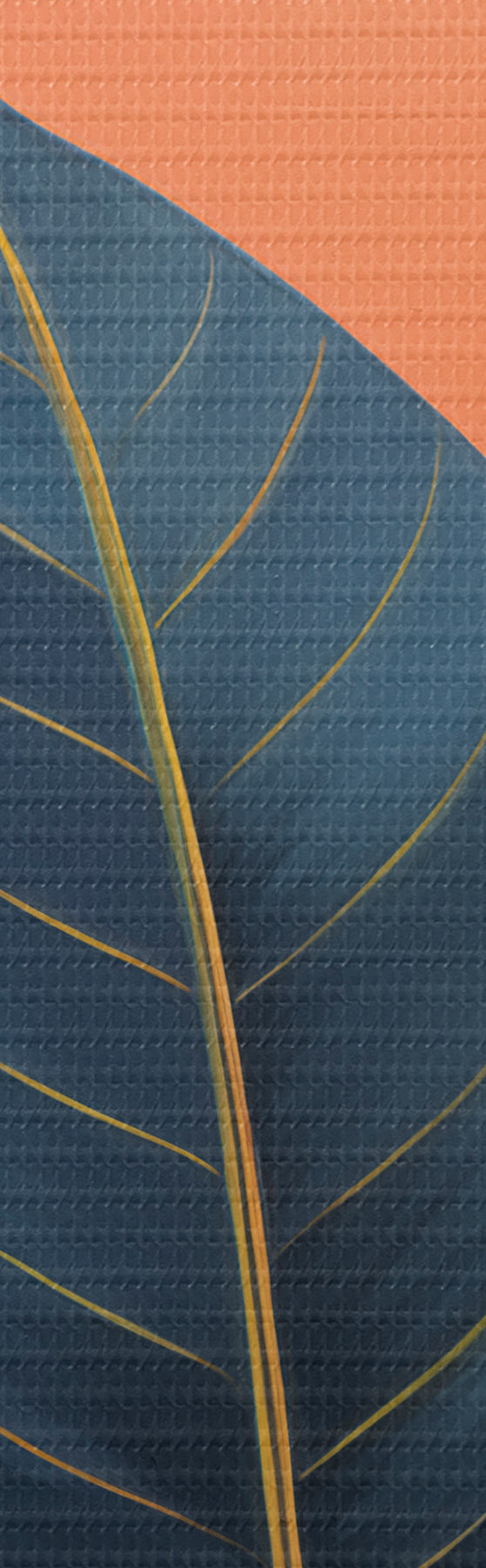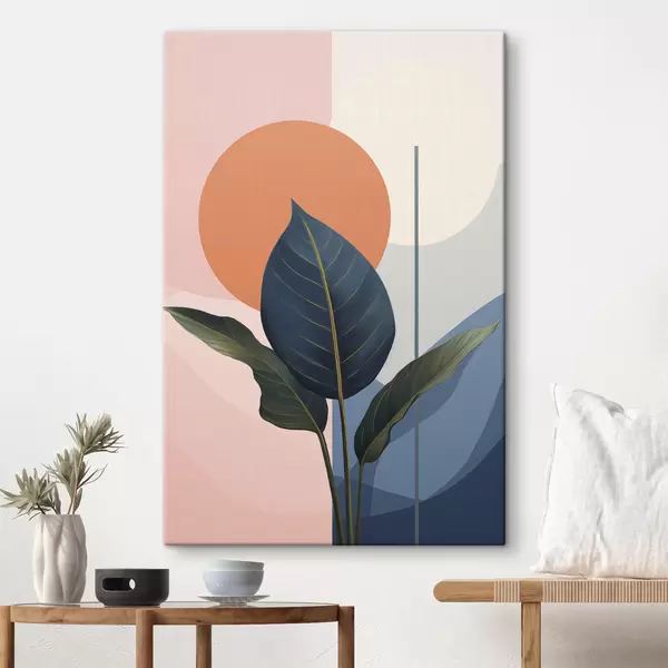 Obraz Tmavé listy na pozadí abstraktních tvarů v broskvové a šedé barvě s oranžovým kruhem Č. s47425