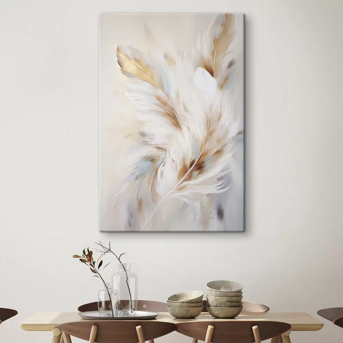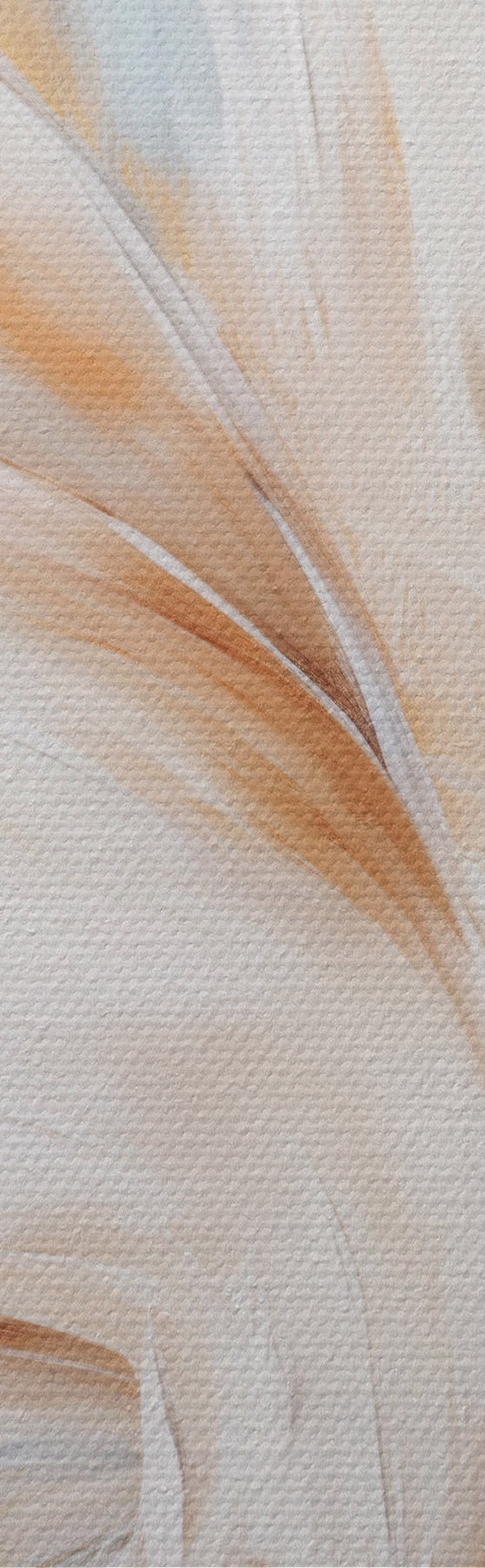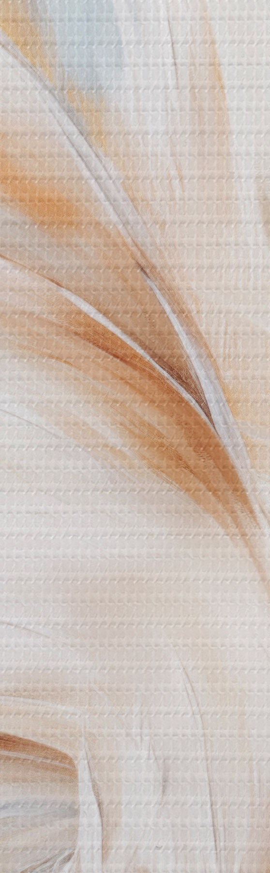 Obraz Velká, měkká peříčka v kombinaci bílé, žluté a hnědé barvy na světlém, abstraktním pozadí. Č. s47442