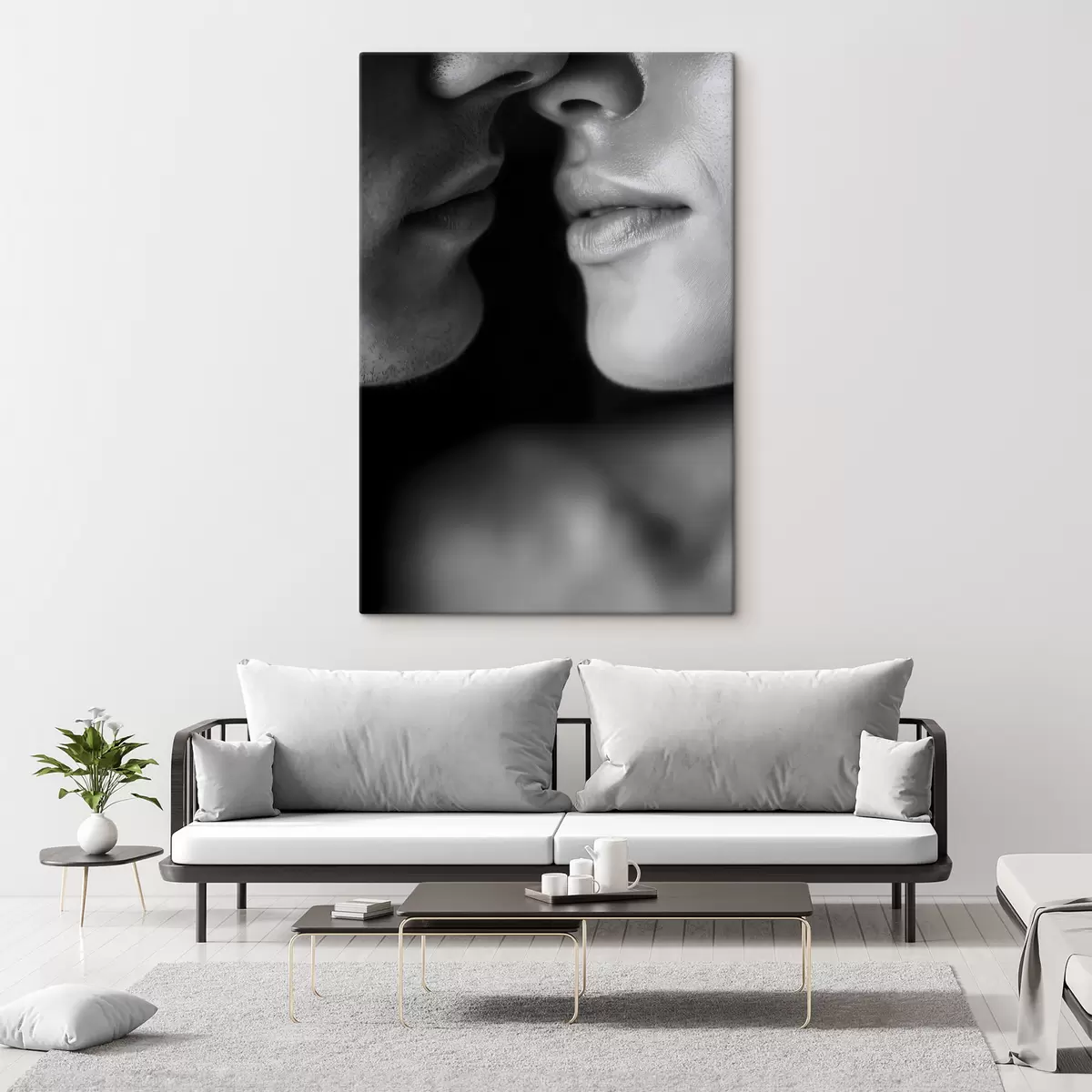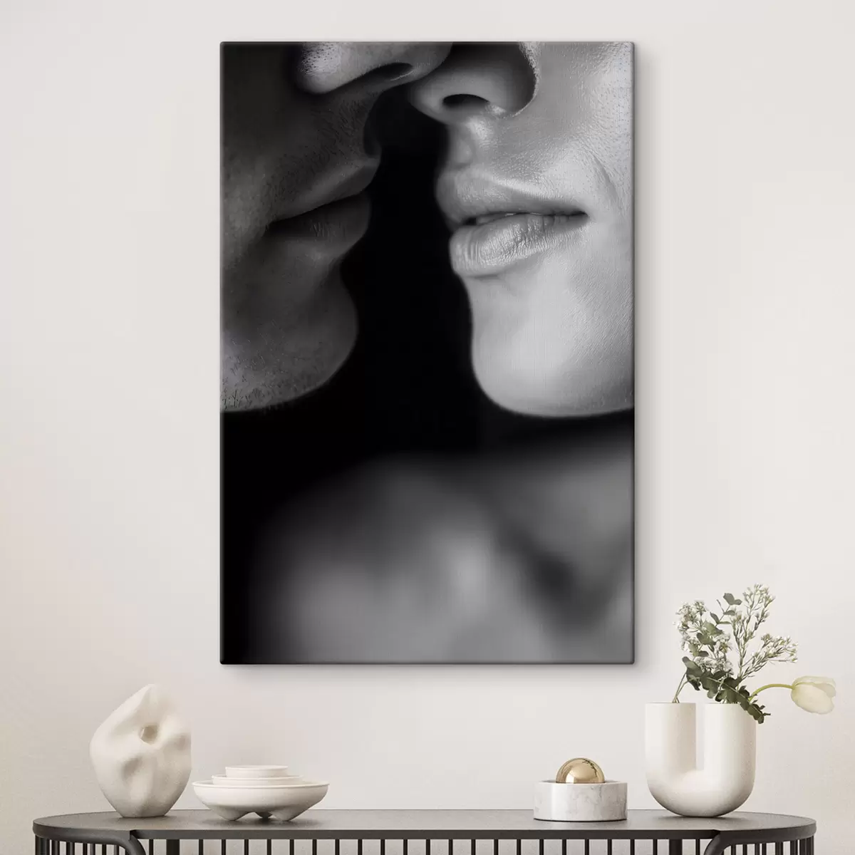 Obraz černé a bílé rty muže a ženy Č. s47687