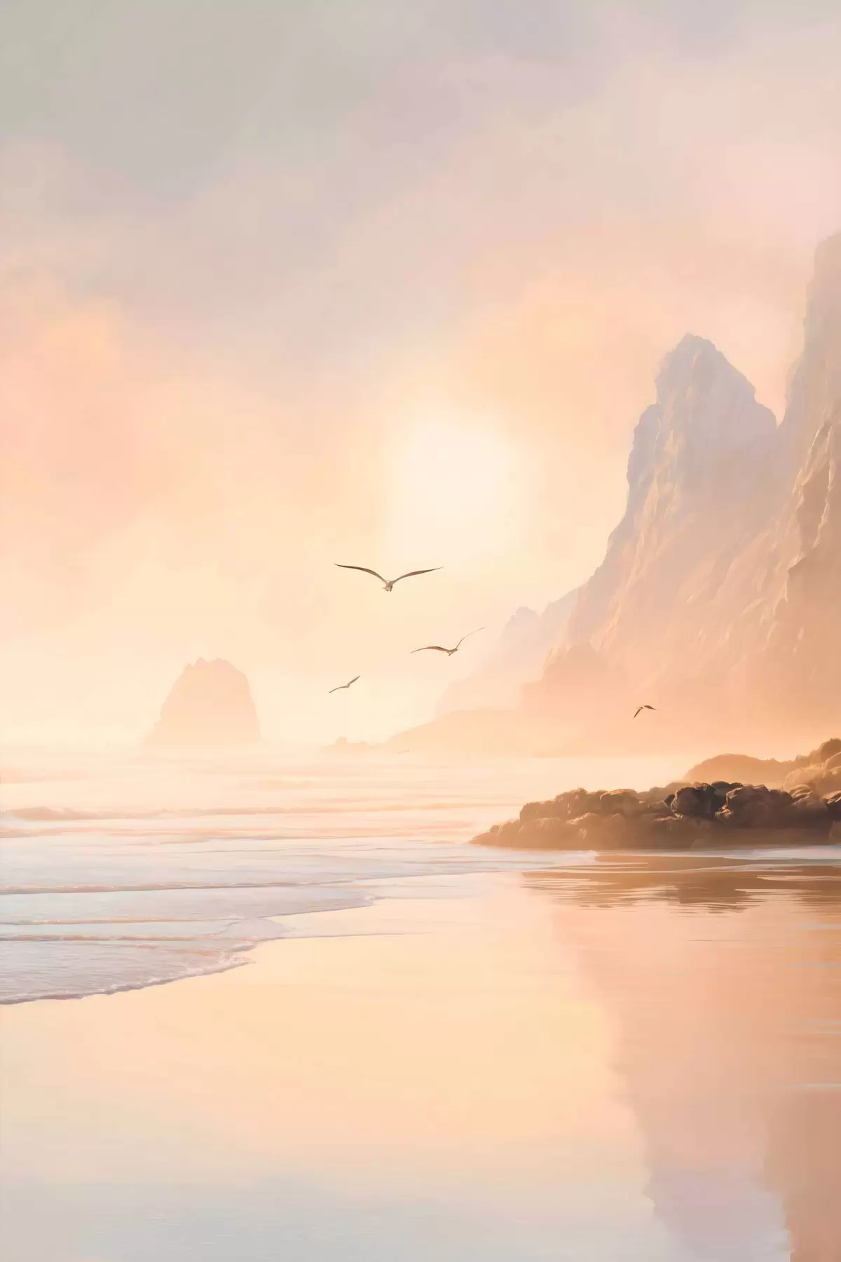 Obraz oceánské svítání na pozadí hor Č. s47690
