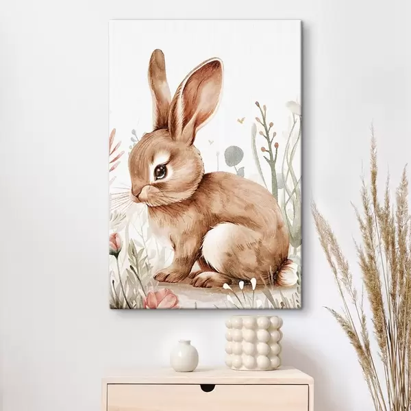 Obraz Roztomilý králíček v květinách, efekt tužky Č. s47741