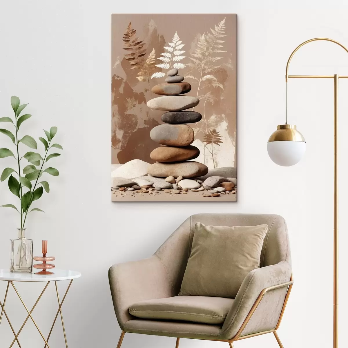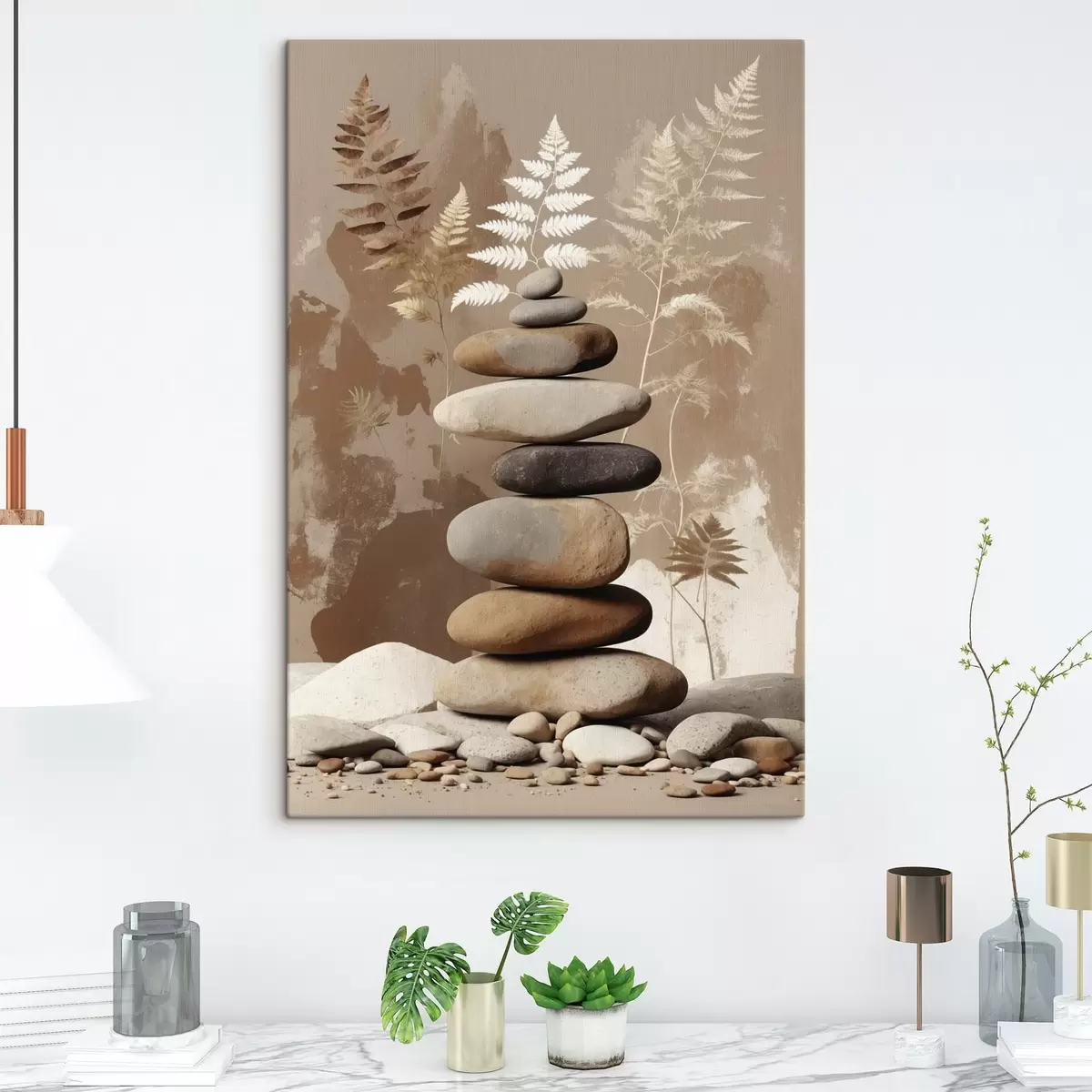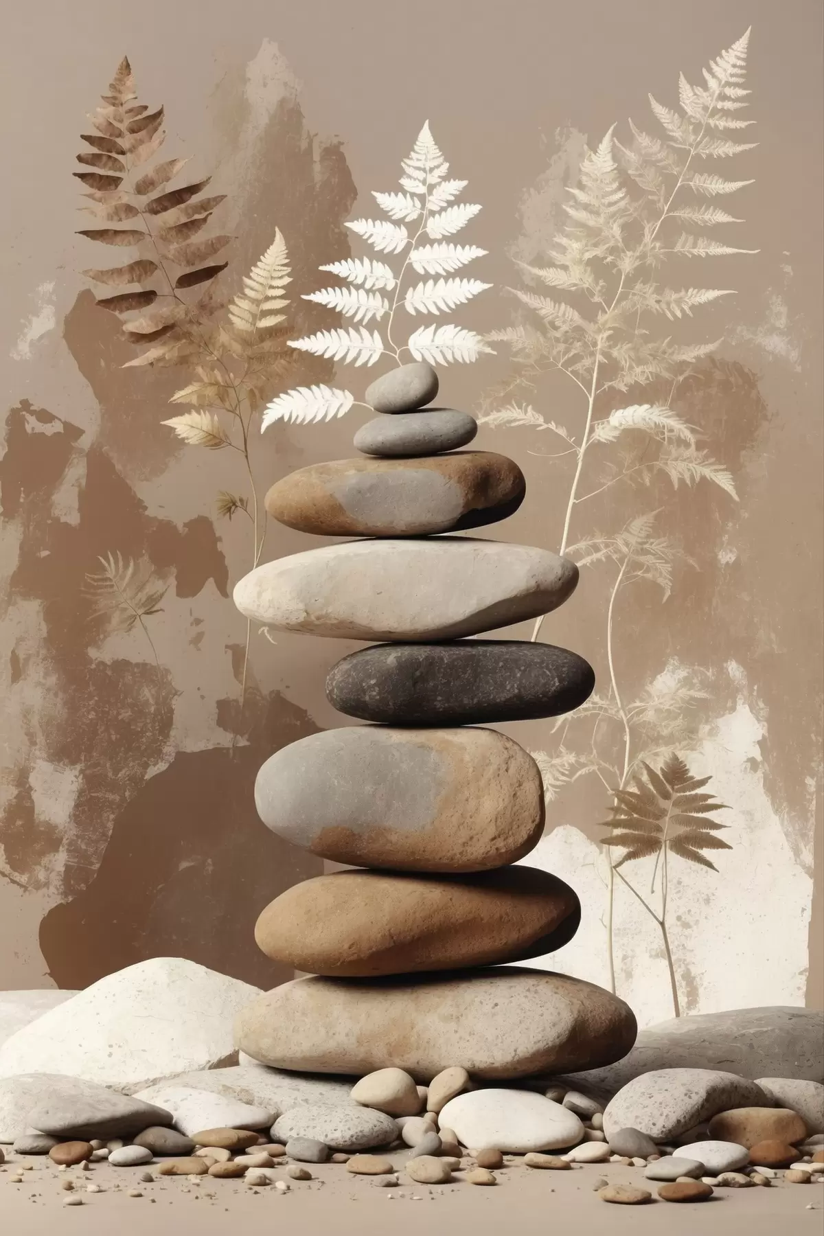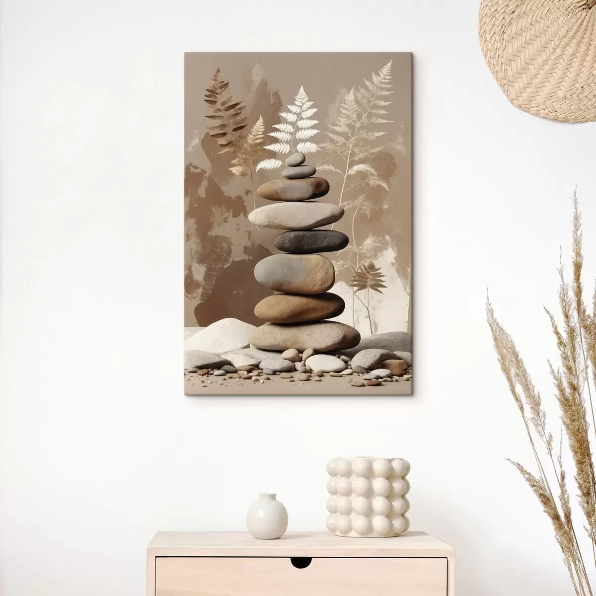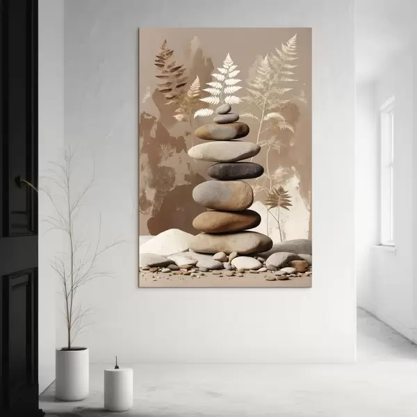 Obraz Hromada hladkých kamenů s botanickým pozadím Č. s47764