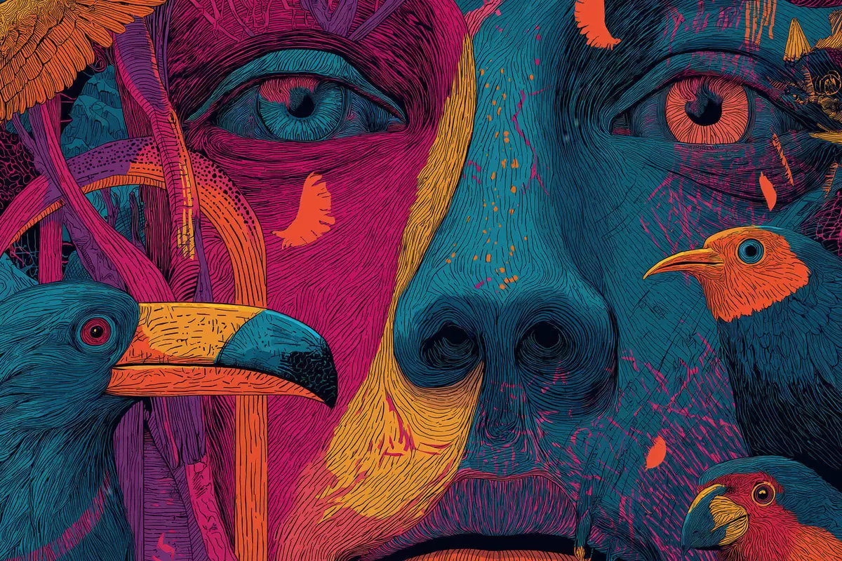 Obraz Psychedelický portrét s ptáky Č. s47789