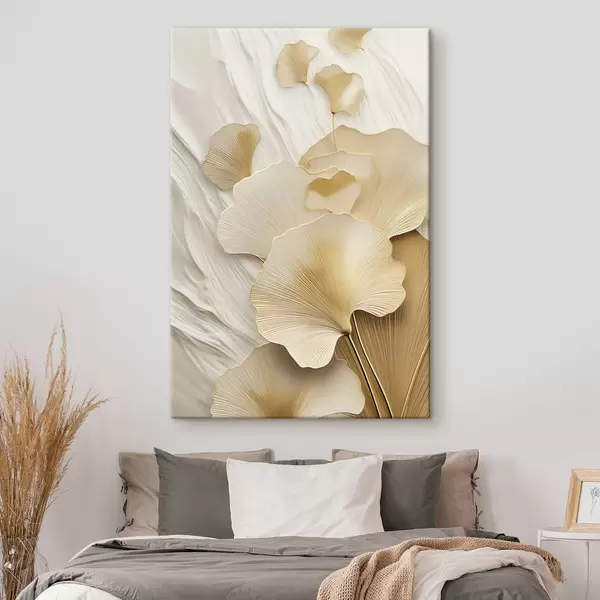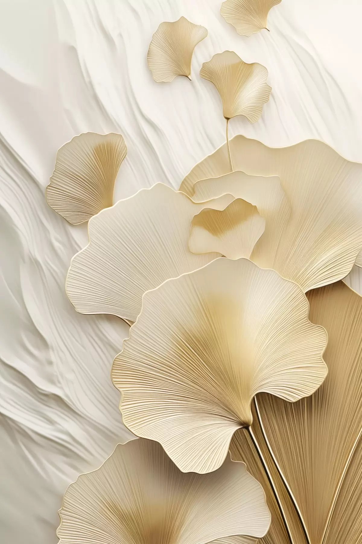 Obraz Abstraktní listy ginkga na texturovaném světlém pozadí, elegantní a abstraktní kompozice Č. s47868
