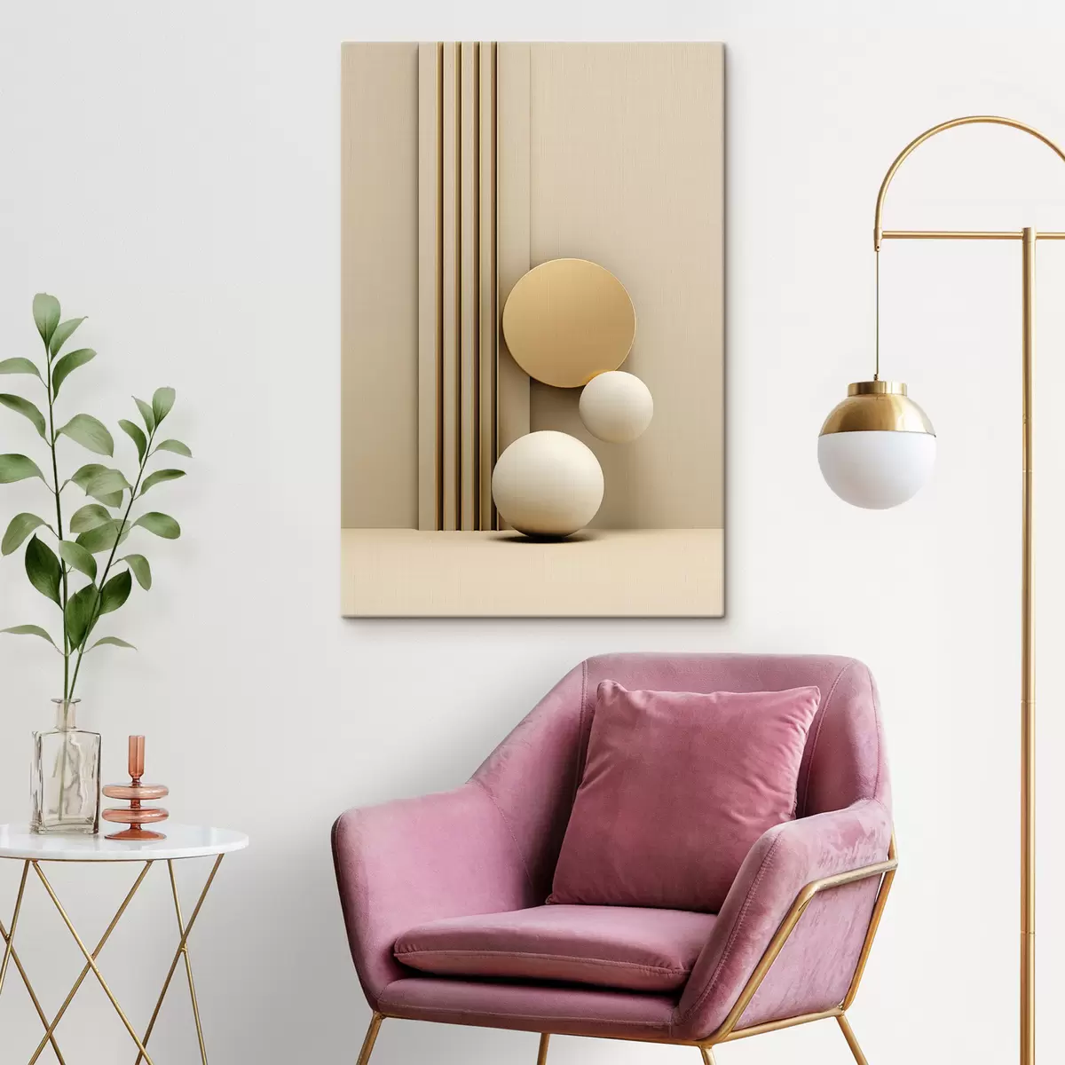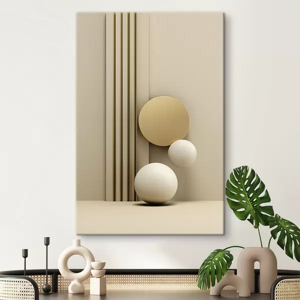 Obraz Abstraktní béžové moderní umění s vertikálními liniemi a sférami Č. s47871
