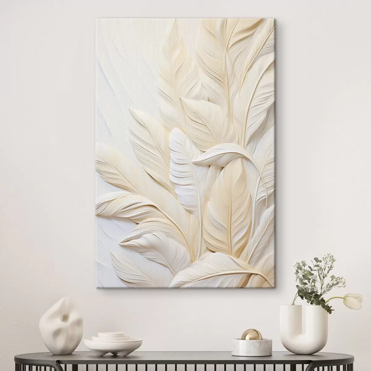 Obraz Krémově zbarvené peří překrývající se navzájem, s jemným, světlým pozadím Č. s47883