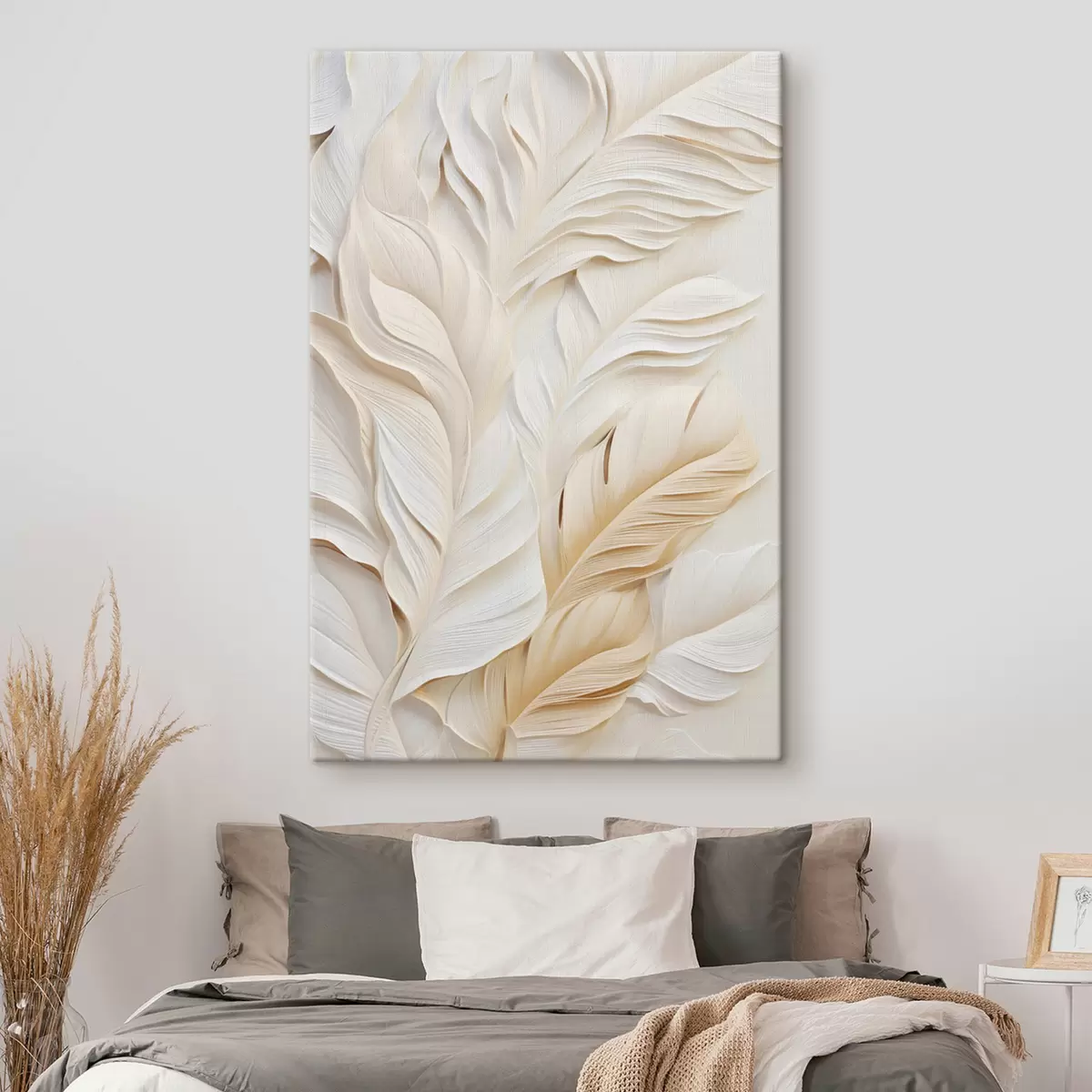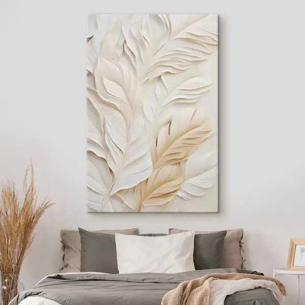 Obraz Krémově zbarvené peří překrývající se navzájem, s jemným, světlým pozadím Č. s47884