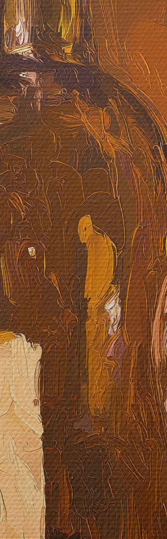 Lakování vytváří na plátně další ochrannou vrstvu. Obraz bude odolnější vůči drobným poškozením a k osvěžení nalakovaného obrazu jej můžete otřít měkkým, mírně navlhčeným hadříkem.